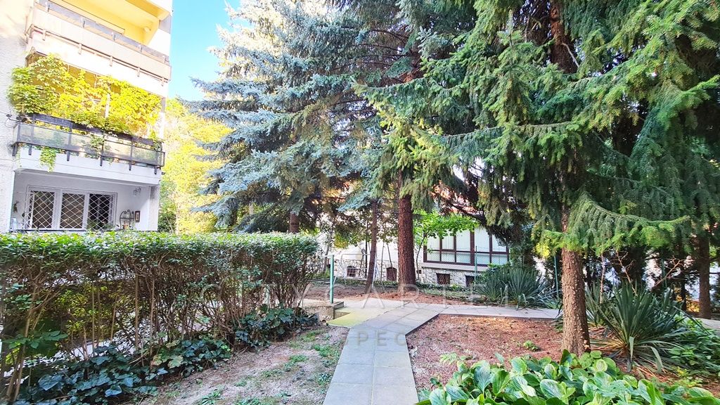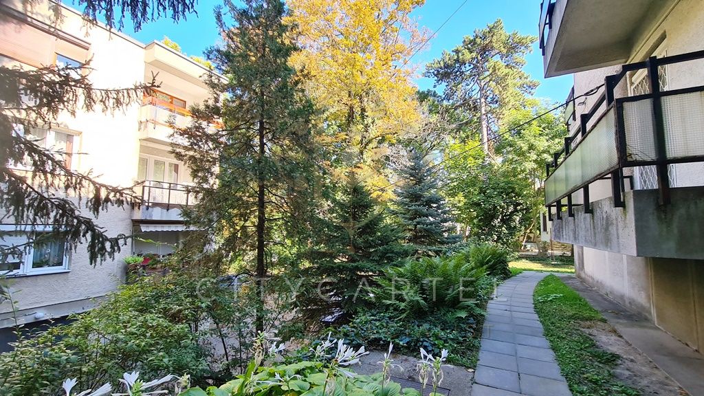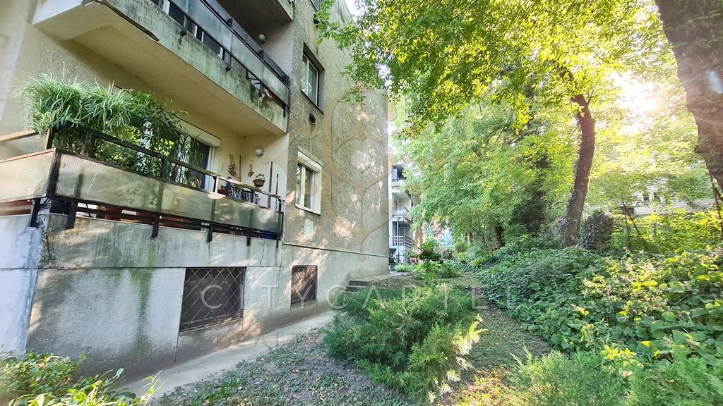 A Budagyöngye bevásárló központtól 10 percre a Tárogató úton, ősfás, parkosított és körbekerített telken, tégla építésű, 56 nm-es két erkélyes, körbejárható kettő szobás, gázkonvektoros földszinti lakás tárolóval eladó.