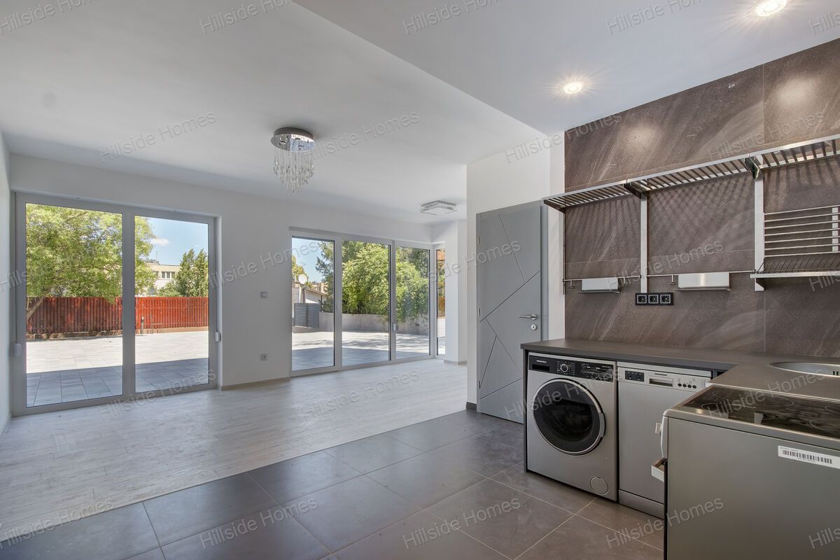 Az otthon hőszivattyúval működő mennyezeti hűtés-fűtéssel rendelkezik, amely házközponti rendszeren keresztül, egyedi mérőórákkal szabályozható. Az A++ energetikai besorolás, a hőszigetelt nyílászárók, a redőnyök és a beépített riasztó mind hozzájárulnak a biztonságos és fenntartható mindennapokhoz. A burkolatok, konyhabútor és szaniterek beépítve állnak rendelkezésre, így az új tulajdonos azonnal birtokba veheti.