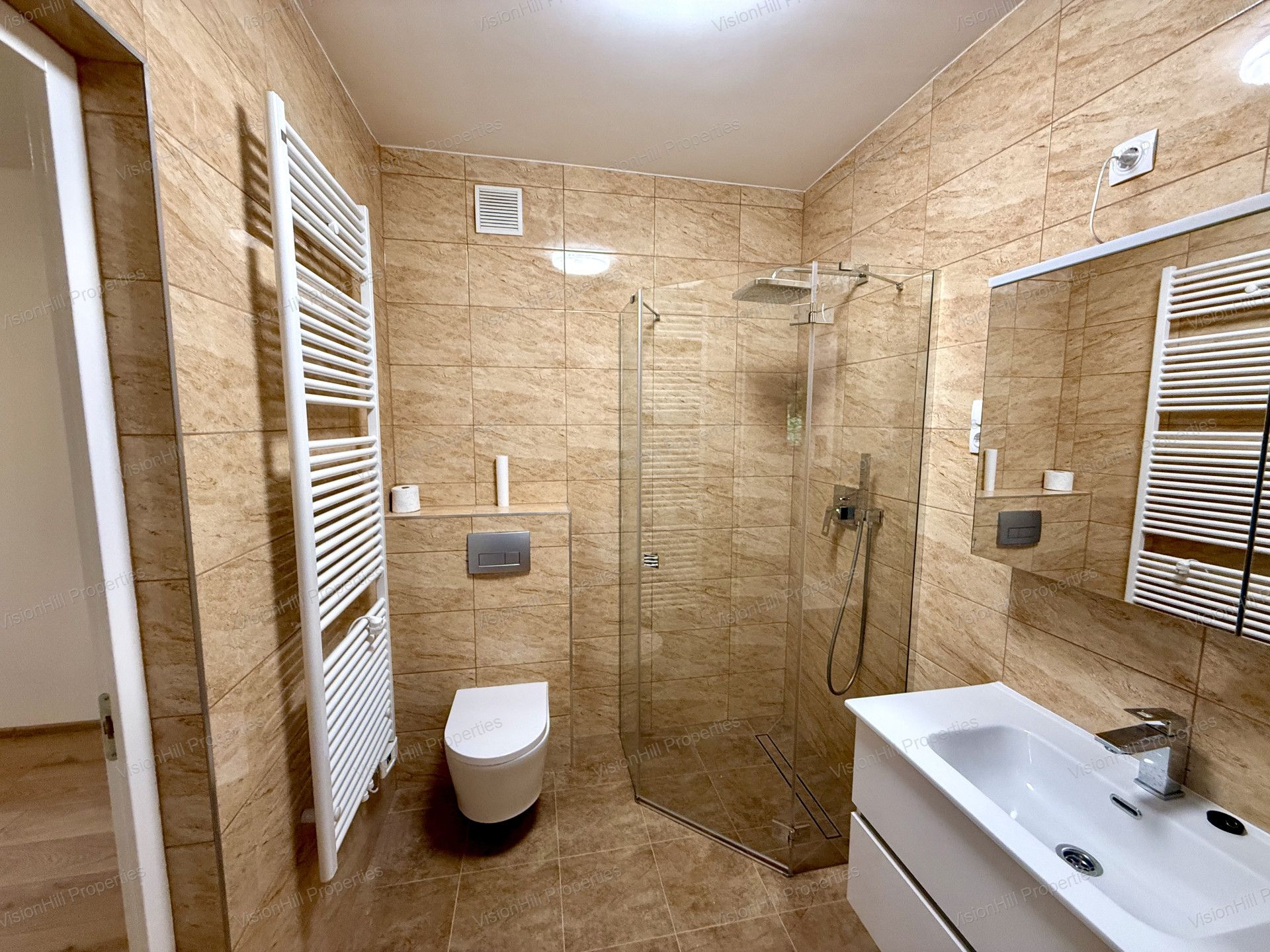 Ez a 50 m2-es ingatlan két oldalról benapozott. A keleti tájolásának valamint a hatalmas ablakoknak köszönhetően rendkívül világos és napsütötte. Az előtérből nyílik amerikai konyhás nappali és a fürdőszoba . A hálószobából ugyanúgy megközelíthető a fürdőszoba. A konvektor és hűtű-fűtő klíma szolgáltatja fűtést és a melegvizet az új bojler. 2025-os felújítás során a villamos és vízvezetékek lettek kicserélve.