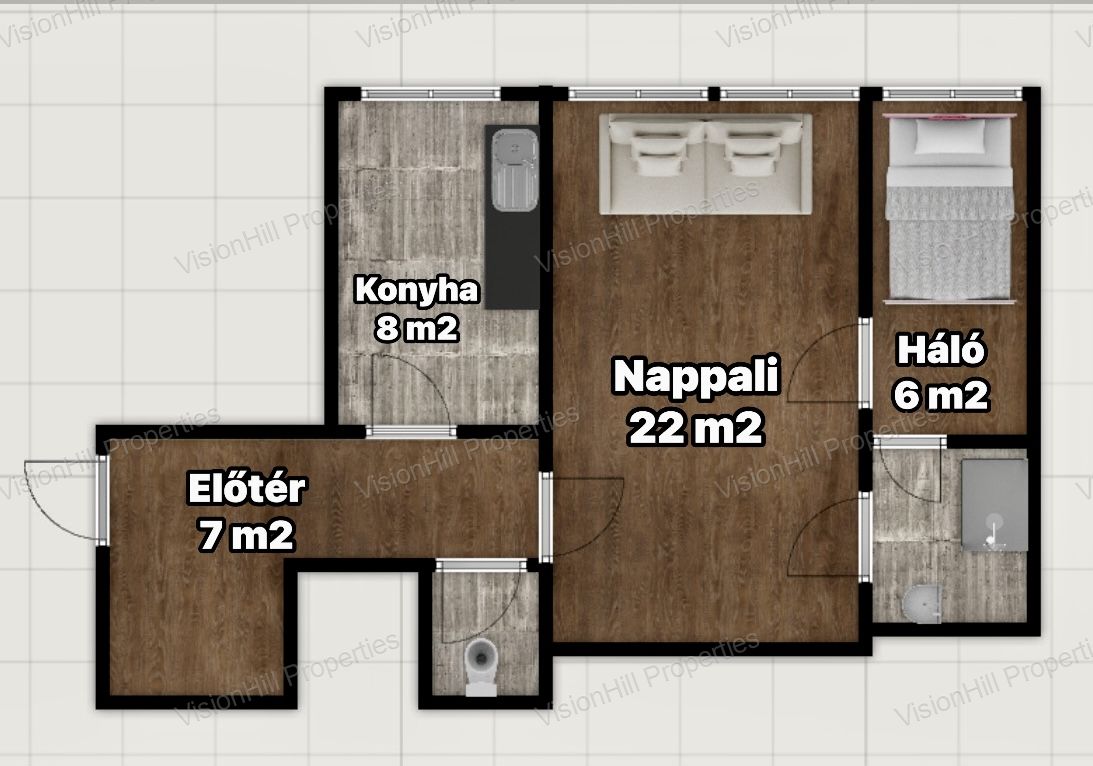 A keleti tájolású lakás tulajdoni lap szerint is 49 négyzetméter. A lakás világos, jó elosztású: egy hálószoba , nappali , fürdőszoba , WC és az előtér. A szobák ablakai a utcára néznek. A lakás teljes körű műszaki és esztétikai felújításon esett át 2005-ben kivéve a bejárati ajtót. új padlóburkolat, új gépesített konyhabútor, egyedi tervezésű beépített szekrények, külső és belső nyílászárók.