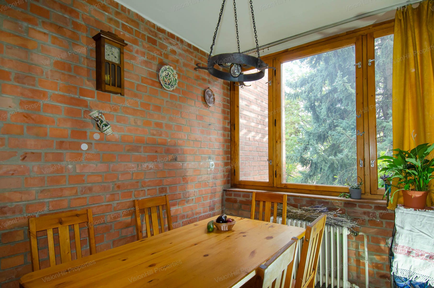 A hatlakásos társasház 1976-ban épült, rendezett és jó statikai állapotú épület. A házat csendes, ápolt környezet veszi körül, a nagy, ősfás kertet jelenleg egyik lakó sem használja, így különösen nyugodt és intim légkört biztosít. A lakáshoz garázs és tároló is tartozik, ami nagy előny ebben a környékben.