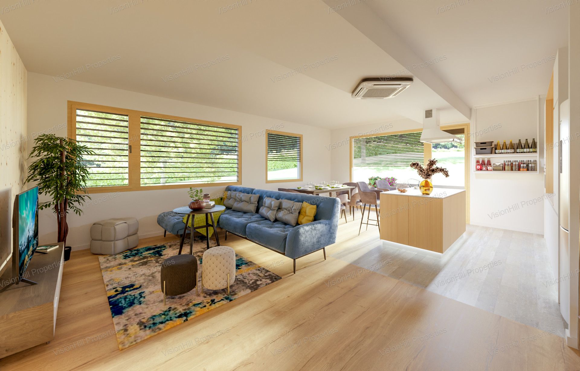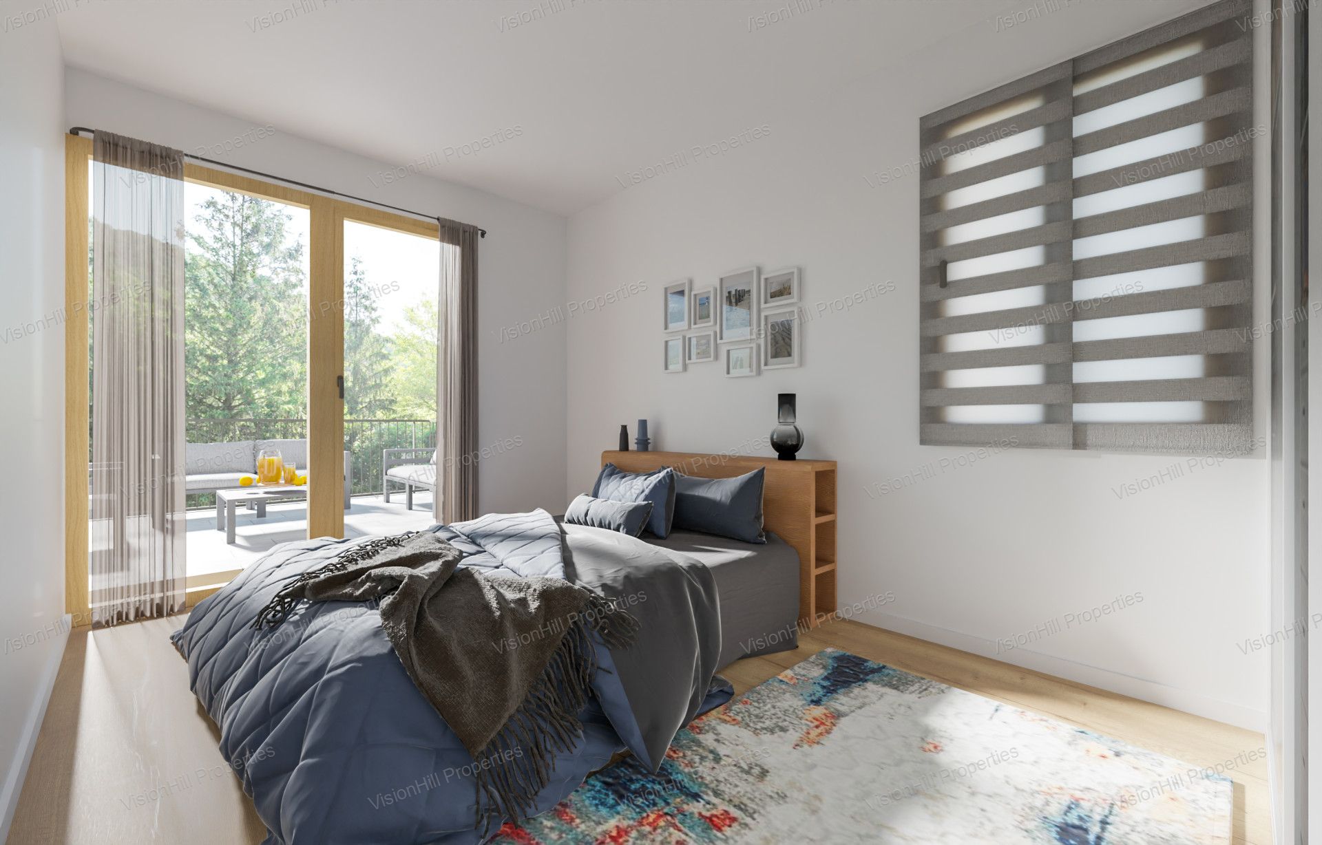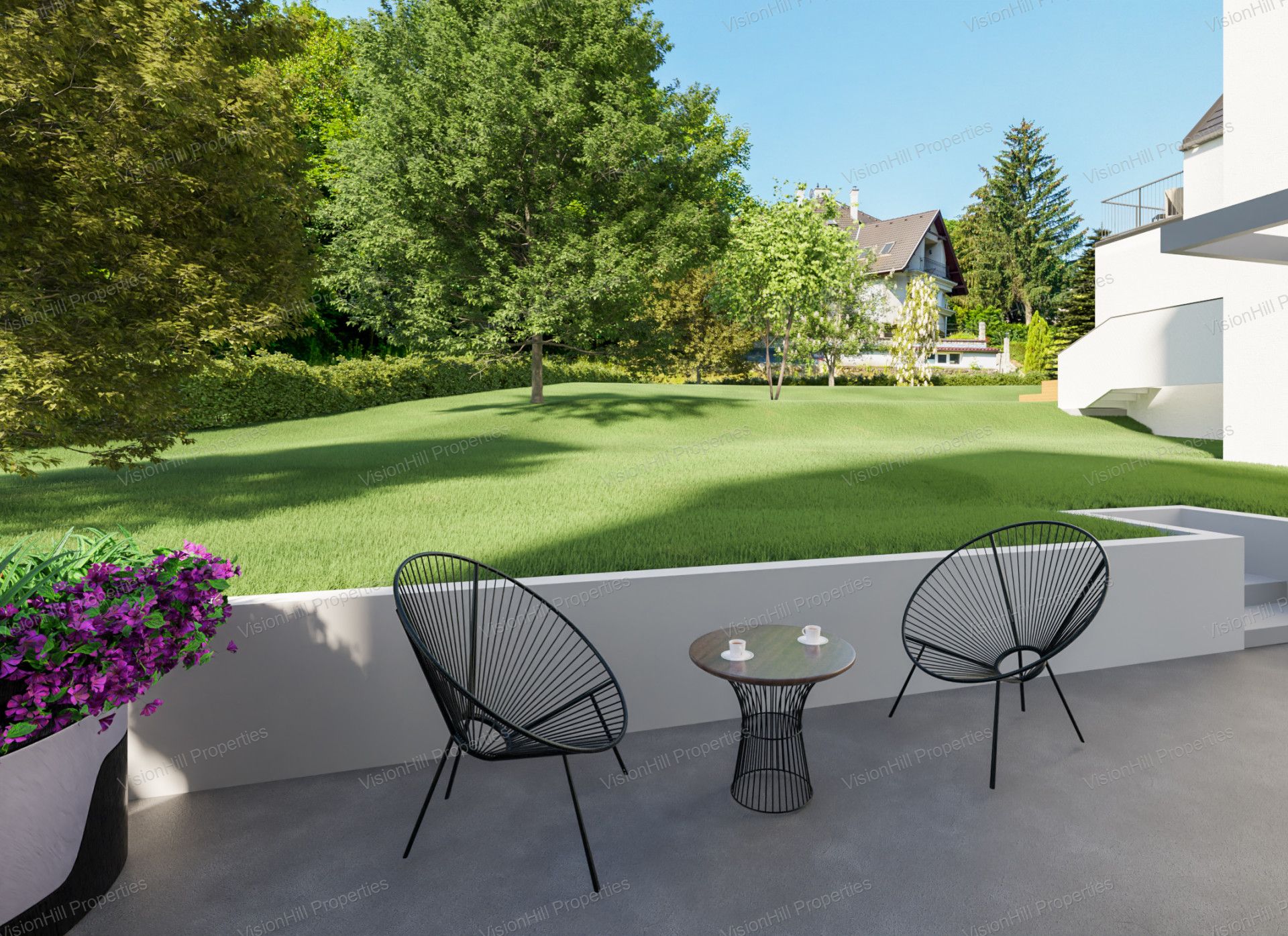 A lakások kialakítása modern, tágas, nagy üvegfelületekkel, amelyek maximálisan kihasználják a természetes fényt. A nappalik déli tájolásúak, és a kertre vagy a panorámás teraszokra nyílnak.