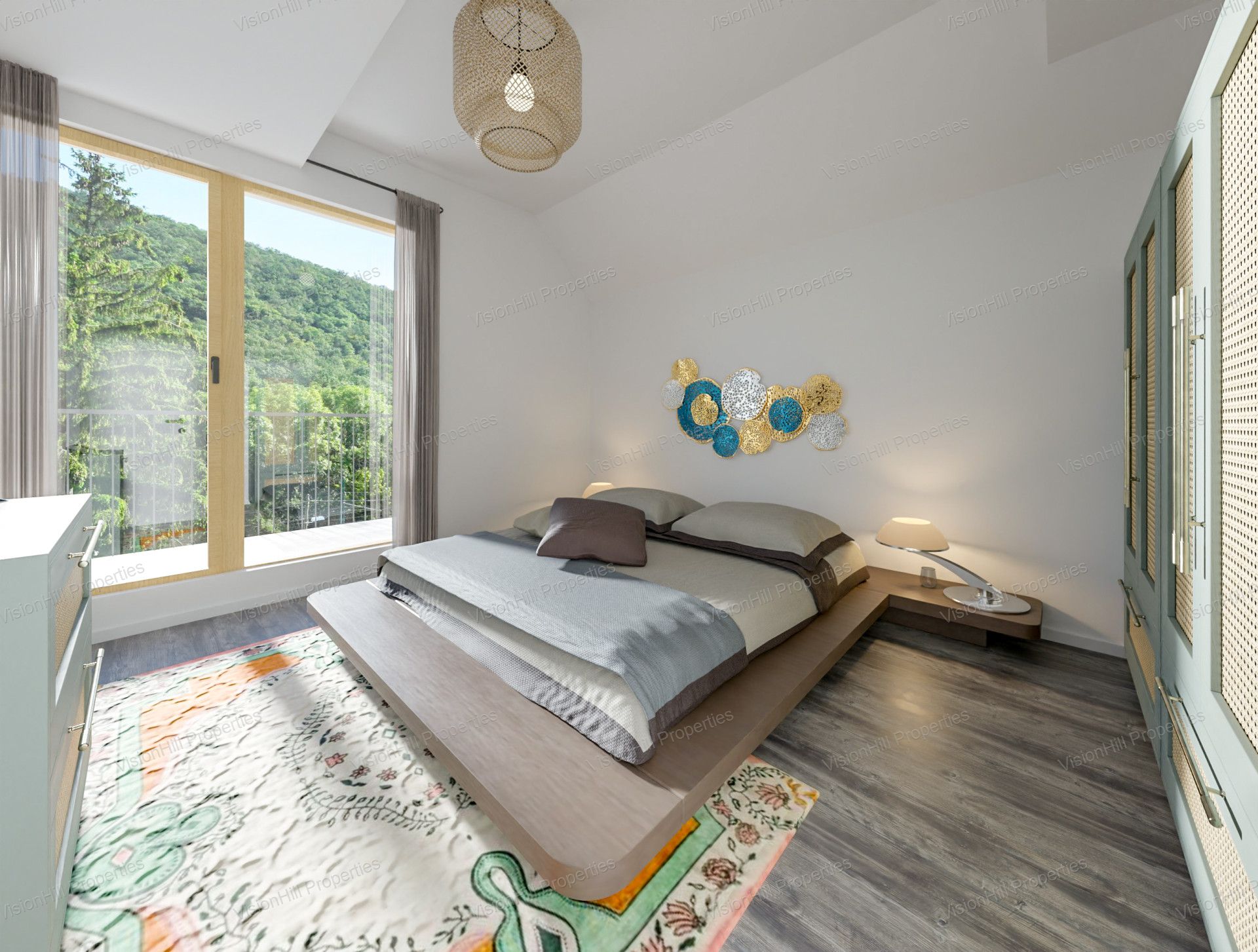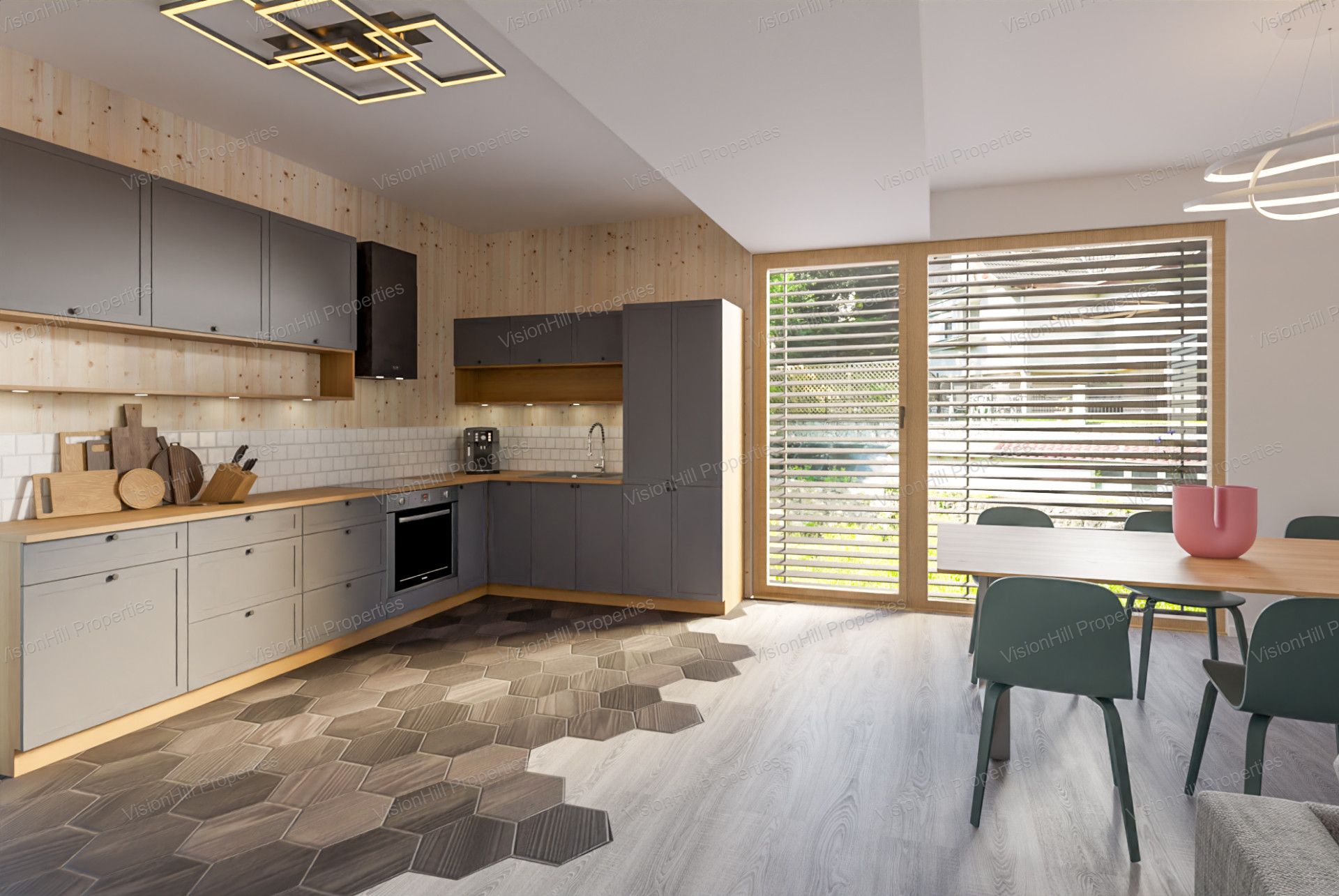 A lakások kialakítása modern, tágas, nagy üvegfelületekkel, amelyek maximálisan kihasználják a természetes fényt. A nappalik déli tájolásúak, és a kertre vagy a panorámás teraszokra nyílnak.