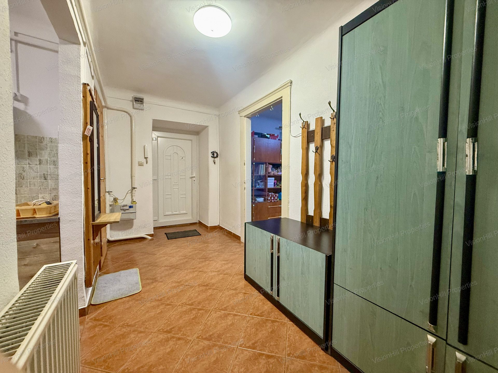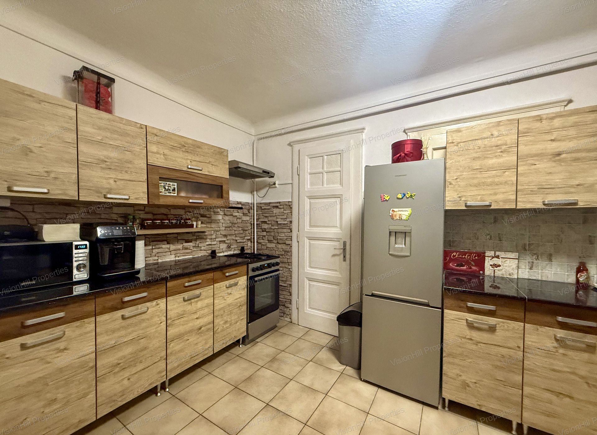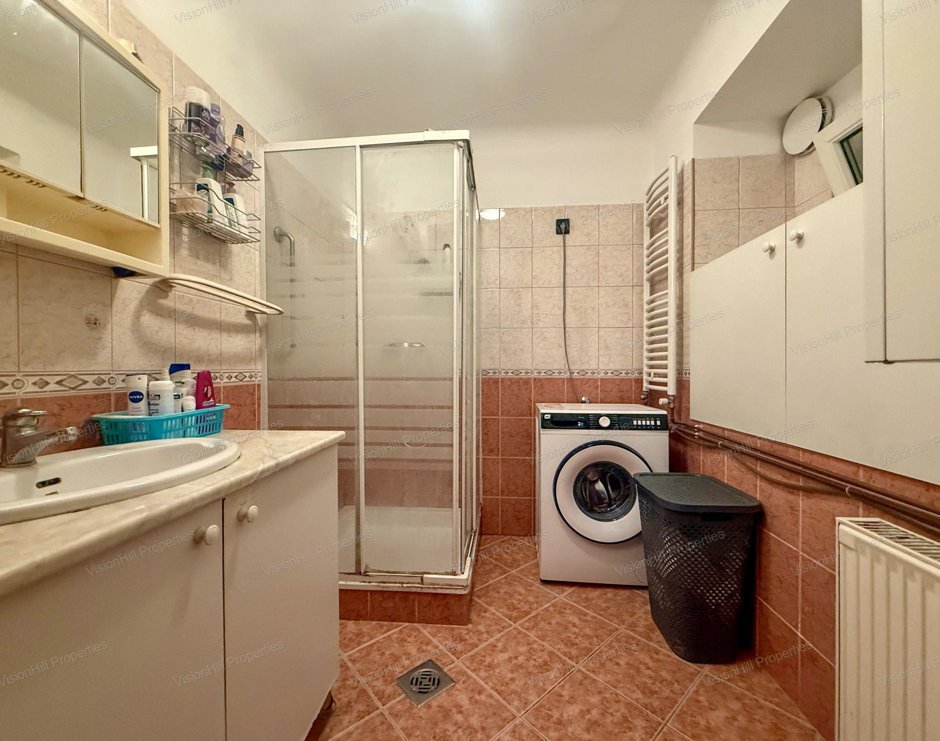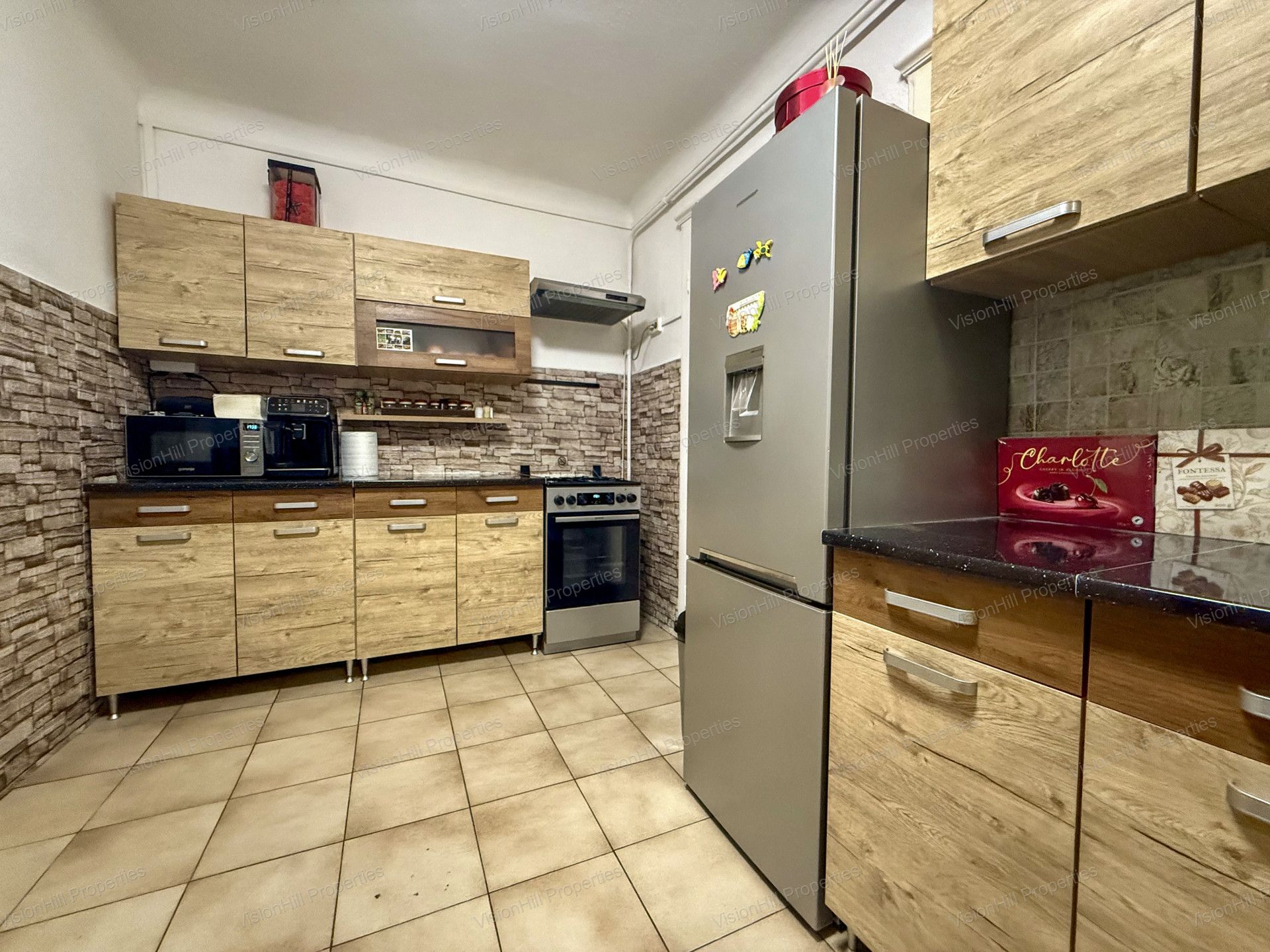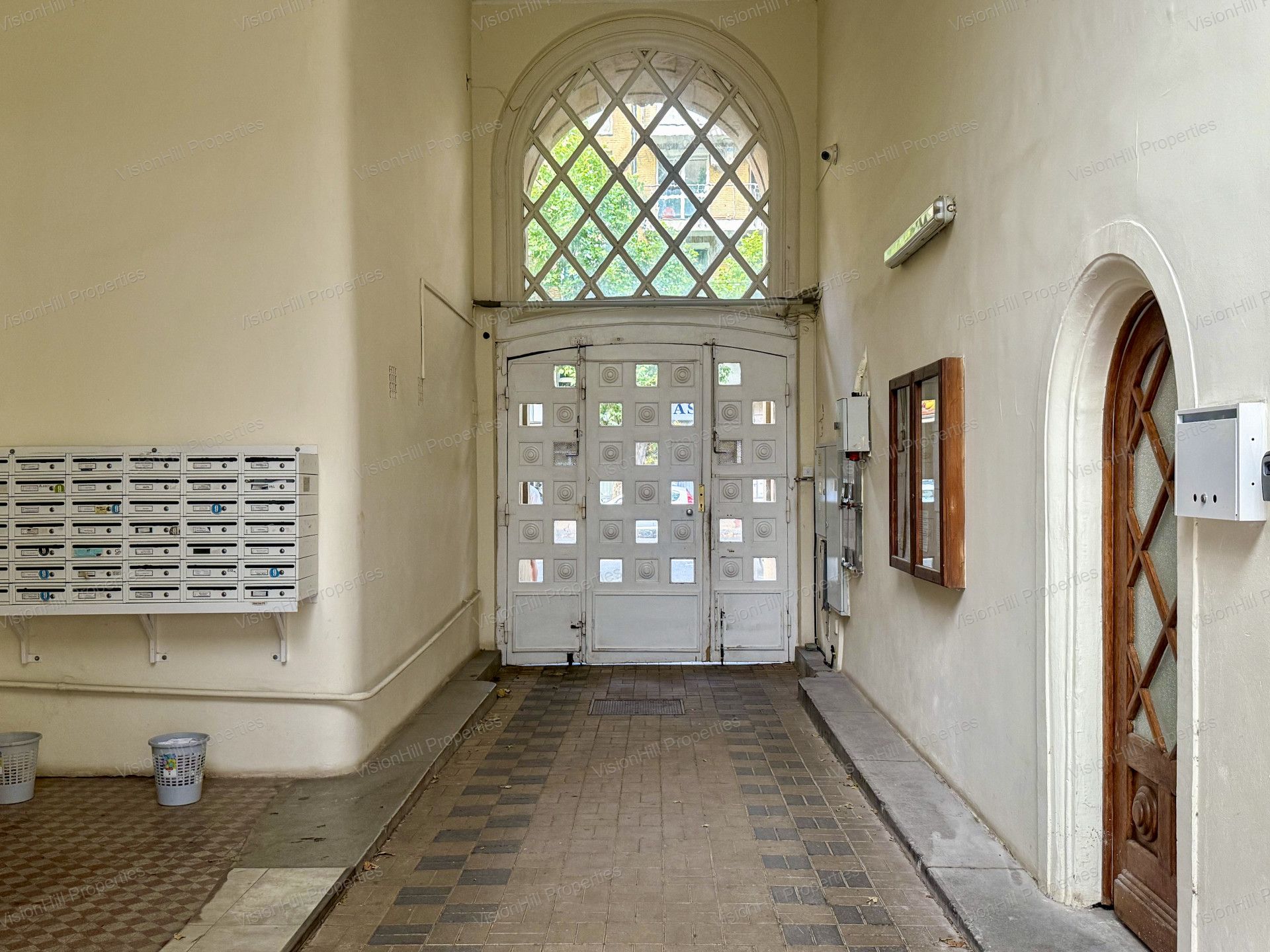 A földszinti, 72 m²-es lakás 2+1 félszobával rendelkezik, keleti tájolású, ablakai csendes, belső udvarra néznek. A lakásból egy 18 m²-es, privát udvarként használt lichthof nyílik, amely 2024-ben dryvit hőszigetelést kapott, így ideális tárolásra, pihenésre, játékra, barkácsolásra. A fürdőszoba zuhanyfülkés. A lakás burkolata a 2000-es években lett felújítva, a kisebb hálószoba burkolata pedig 2023-ban cserélve. A konyhában, előszobában, tárolóban, fürdőben és WC-ben hidegburkolat, míg a szobákban laminált parketta található. A lakás mozgáskorlátozottak számára is alkalmas.A lakáshoz tartozik egy 12 m²-es, ajtóval szeparálható pincerész, amelyhez lift vezet. A konyhához tartozik egy önálló tároló (spájz).