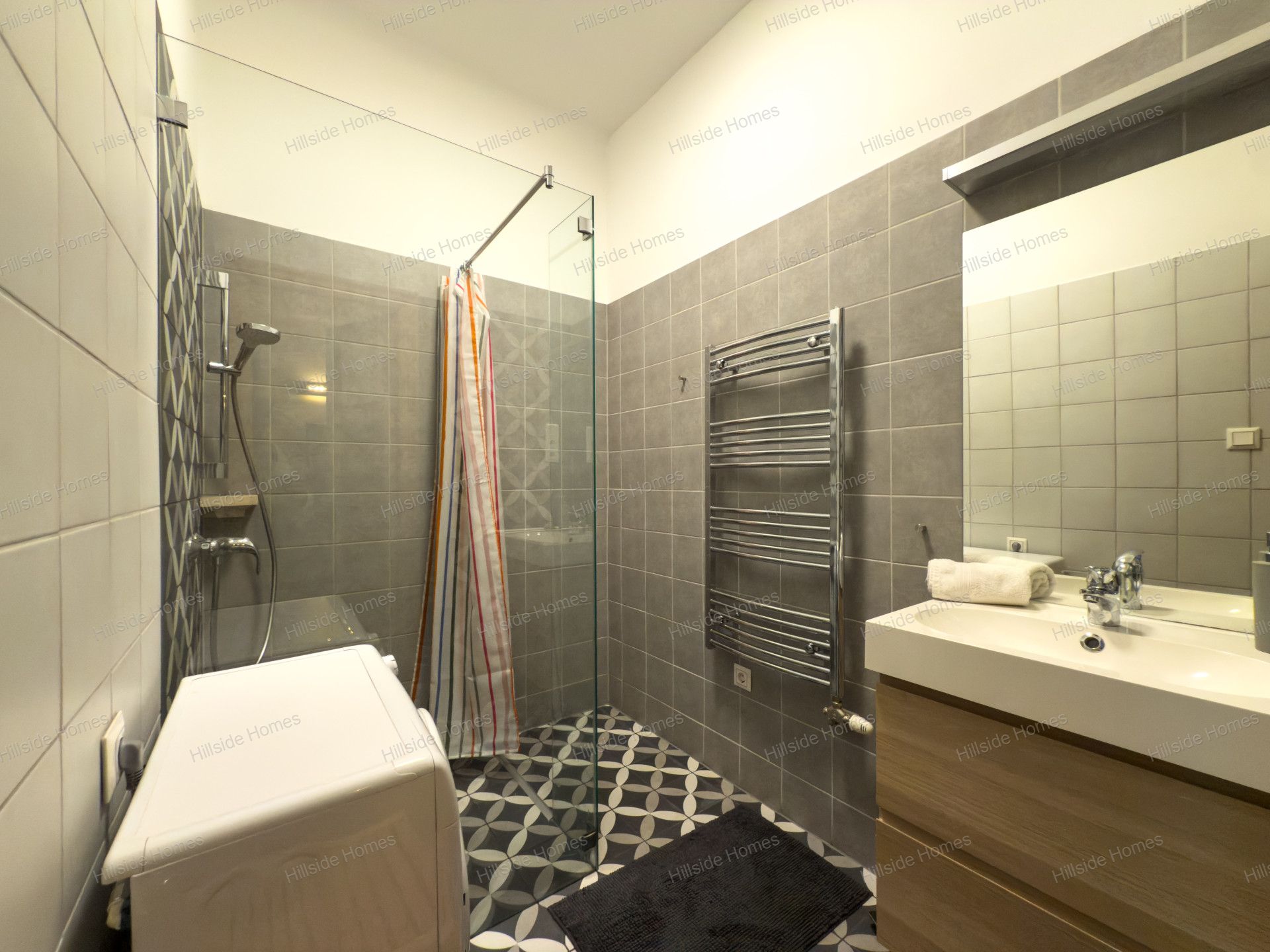 A lakás 77 m² alapterületen + 15 m² garázzsal és 6 m² tárolóval rendelkezik, így összesen 92 m² hasznos területet kínál. A három tágas szoba és dupla fürdőszoba, amelyek közül egy a hálószobához tartozik, kényelmes és praktikus elrendezést biztosít. A nappali és az erkélyes szobák mind világosak, mivel a lakás délkeleti tájolású, így egész nap természetes fényben úszik. A 3 méteres belmagasság és a tölgyfa parketta eleganciát és tágasságot kölcsönöz az ingatlannak. A lakás modern, prémium minőségű felszereltséggel rendelkezik, és az ár tartalmazza a teljes bútorzatot, amelyet egy belsőépítész tervezett meg, figyelembe véve a legújabb trendeket és igényeket.