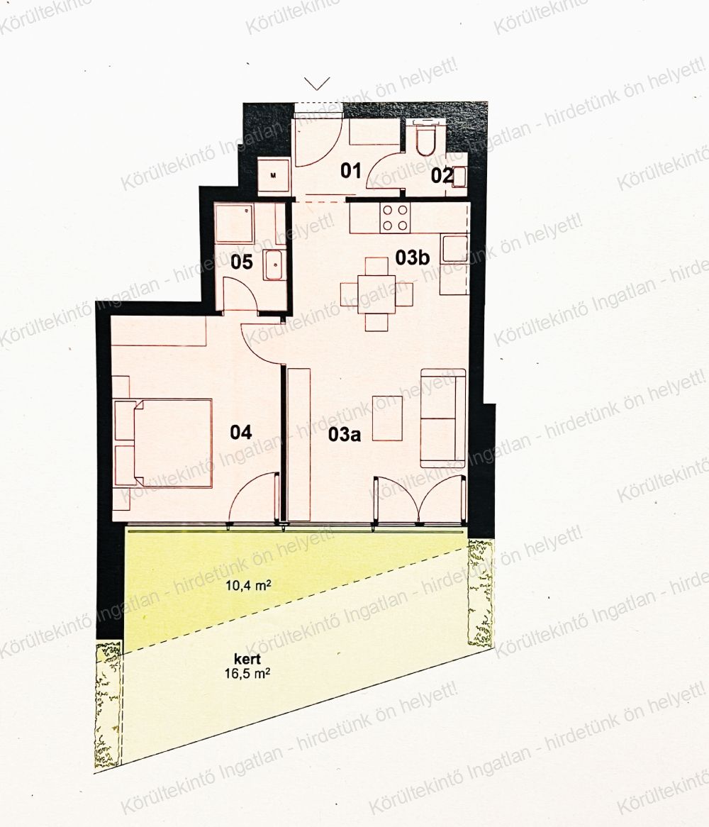 A Danubio lakóparkban kertkapcsolatos 47 m2-es, amerikai konyhás nappalis, egy hálós luxus lakás eladó.