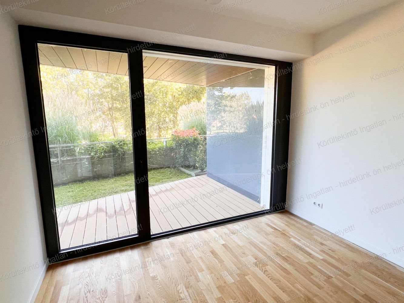 A lakás az épület keleti oldalán és egyben a legcsendesebb részén helyezkedik el, a kertkapcsolat révén bruttó 74 m2 területű életteret biztosít: