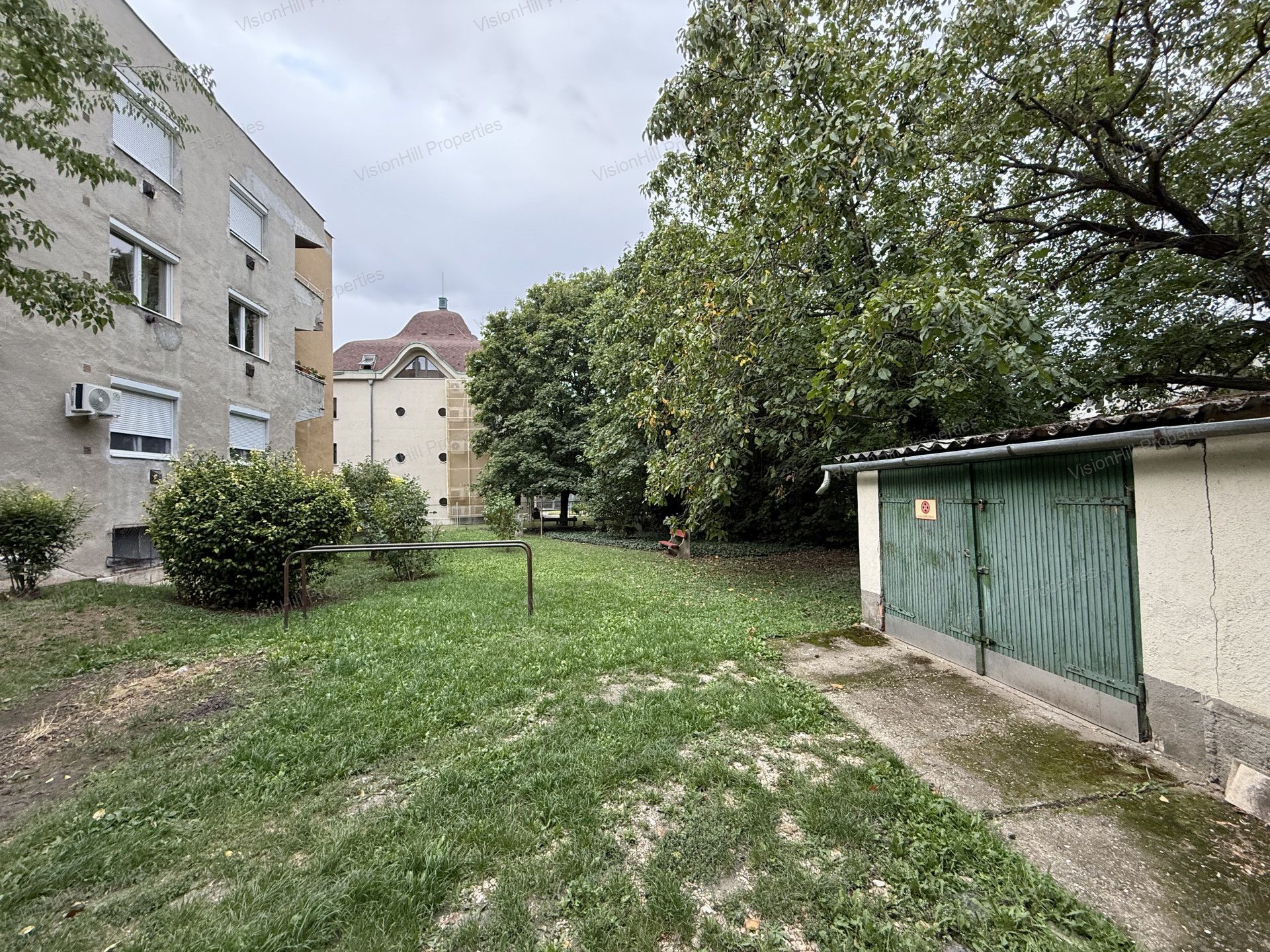 A 1965-ben épült, 10 lakásos társasház két emeletes és egy rengeteg zölddel, hatalmas lombkoronájú fákkal és burjánzó bokrokkal teletűzdelt, gondozott telken található, melyen a kertrészt bármely lakó kedvére használhatja. Három épület található a lakóparkban, melyeket a gyönyörű, közös használatú kert köt össze. A ház jó állapotú, tiszta, rendezett, a lakók a gondnoksággal és a közös képviselettel közösen, nagy hangsúlyt fektetnek az igényes környezet fenntartására.