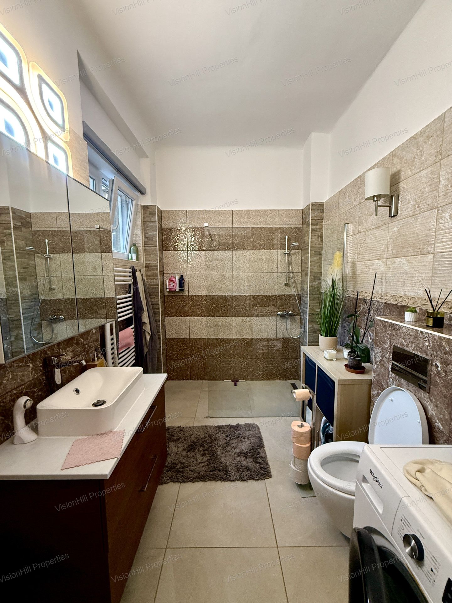 A fűtés kondenzációs kazán biztosítja és a meleg vizet is , minden egyedi méerős.