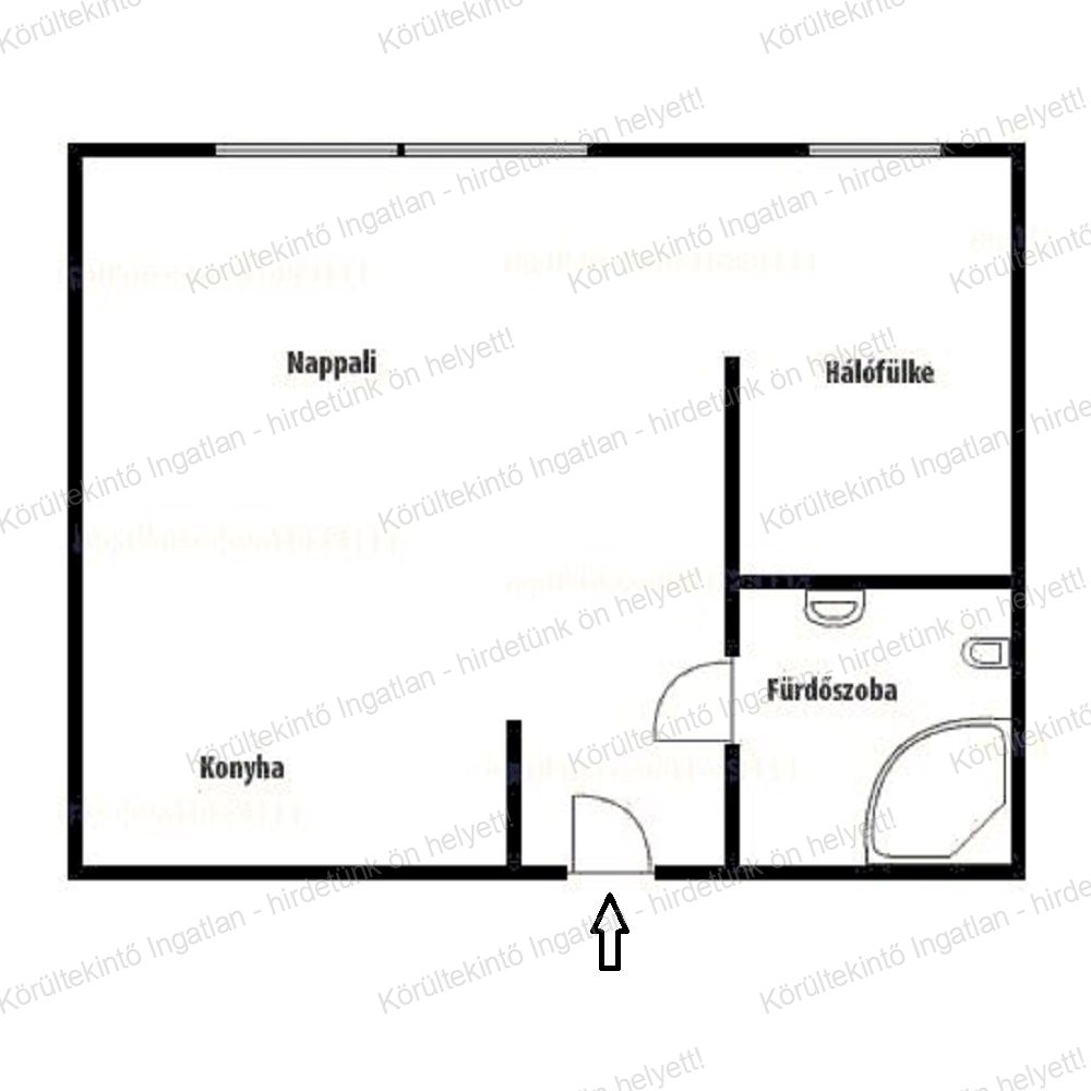A lakás nagyon világos; nappali-konyha, térelválasztó ajtóval ellátott hálófülke, sarokkáddal szerelt fürdő helyiségekből áll, területe összesen 29 nm.