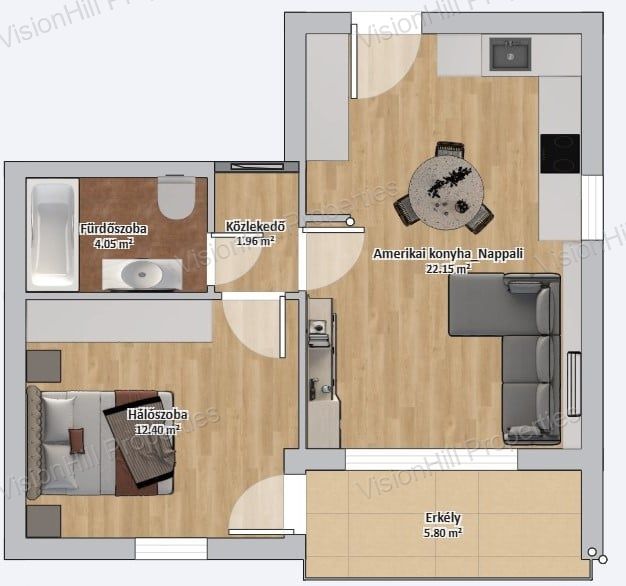 A délkeleti tájolású lakás tulajdoni lap szerint is 40 négyzetméter. A lakás világos, jó elosztású: egy hálószobával, egy amerikai-konyhás nappalival egy fürdőszobával és egy előtérrel rendelkezik. A szobák ablakai kertre néznek. Az ingatlanból kilépve egy 7 nm-es erkélyen találjuk magunkat, ahol napozhatunk, sütögethetünk . A rengeteg üveg felületnek és a kiváló tájolásnak köszönhetően, a lakás kifejezetten világos.