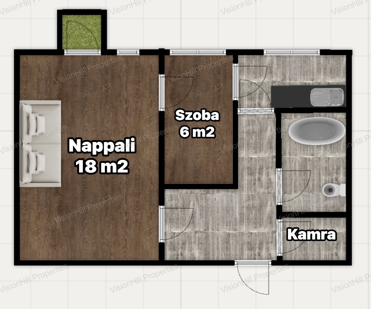 A déli tájolású lakás tulajdoni lap szerint is 44 négyzetméter. A lakás világos, jó elosztású két külön bejártú szobára ,konyhára , fürdőszobára kamrára és előtérre van felosztva a lakás. A lakásban villanyvezetékek lettek felújítva.