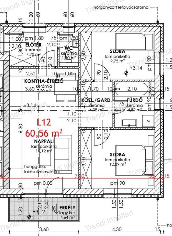 A meghirdetett 1. emeleten található 60,56 nm-es ingatlanban amerikai konyhás nappali, 2 szoba, fürdőszoba, külön WC, gardrób, előtér kerül kialakításra. A nappaliból 4,64 nm-es erkély nyílik.
