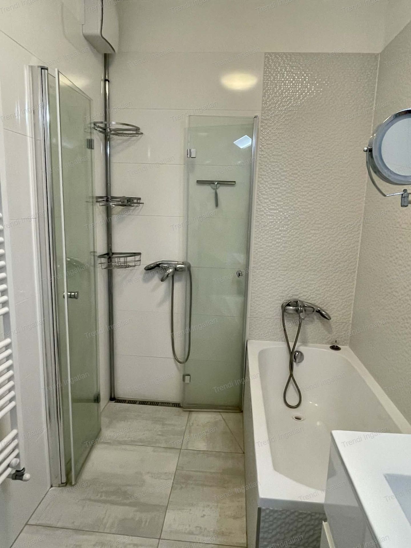 Az igényes, remek elosztású ingatlanban amerikai konyhás nappali, 2 szoba, zuhanyzóval és káddal felszerelt fürdőszoba, külön WC, közlekedő, előtér található. A nappaliból és a szobákból is megközelíthető a 25 nm-es terasz, ami a nyugodt pihenés, kávézás helyszíne lehet. A tágas terasz egy része napellenzővel ellátott. A konyha minőségi gépekkel felszerelt. Az előtérben beépített szekrény található.