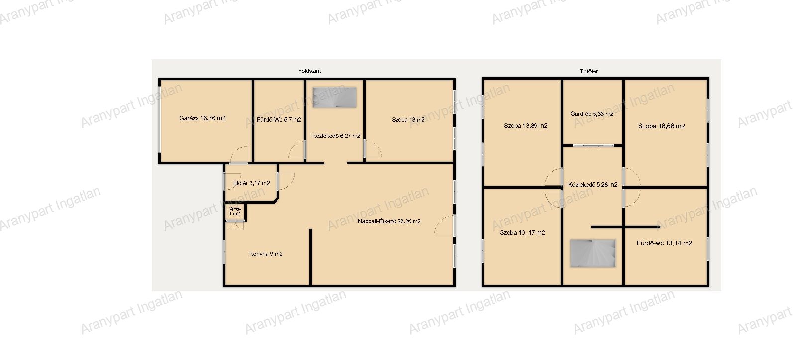 tetőtér: 3 hálószoba, gardrób, fürdő-wc, közlekedő