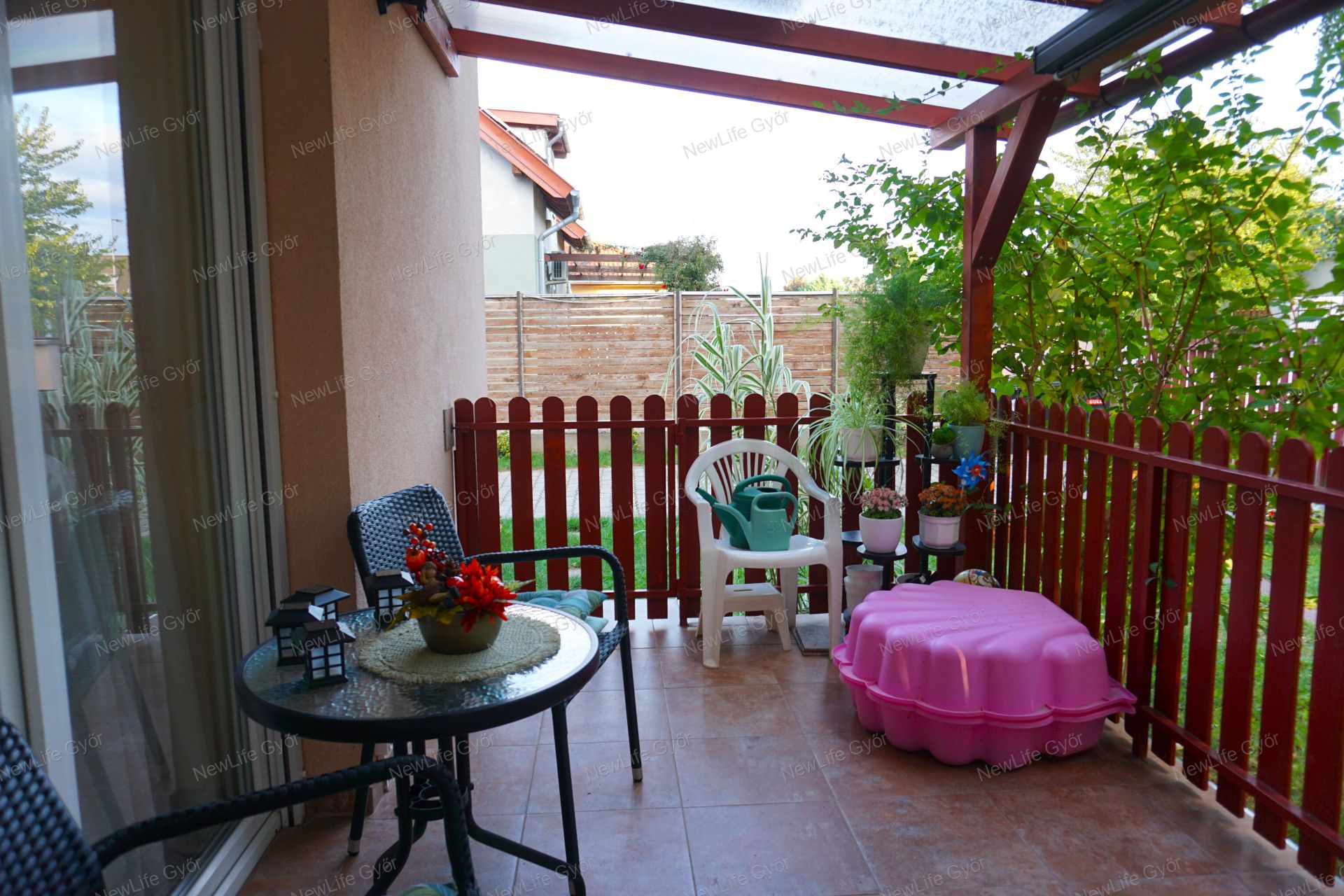 Az ingatlanhoz tartozik egy 9 nm-es fedett terasz, közös tároló, valamint egy zárt közös parkosított udvar.