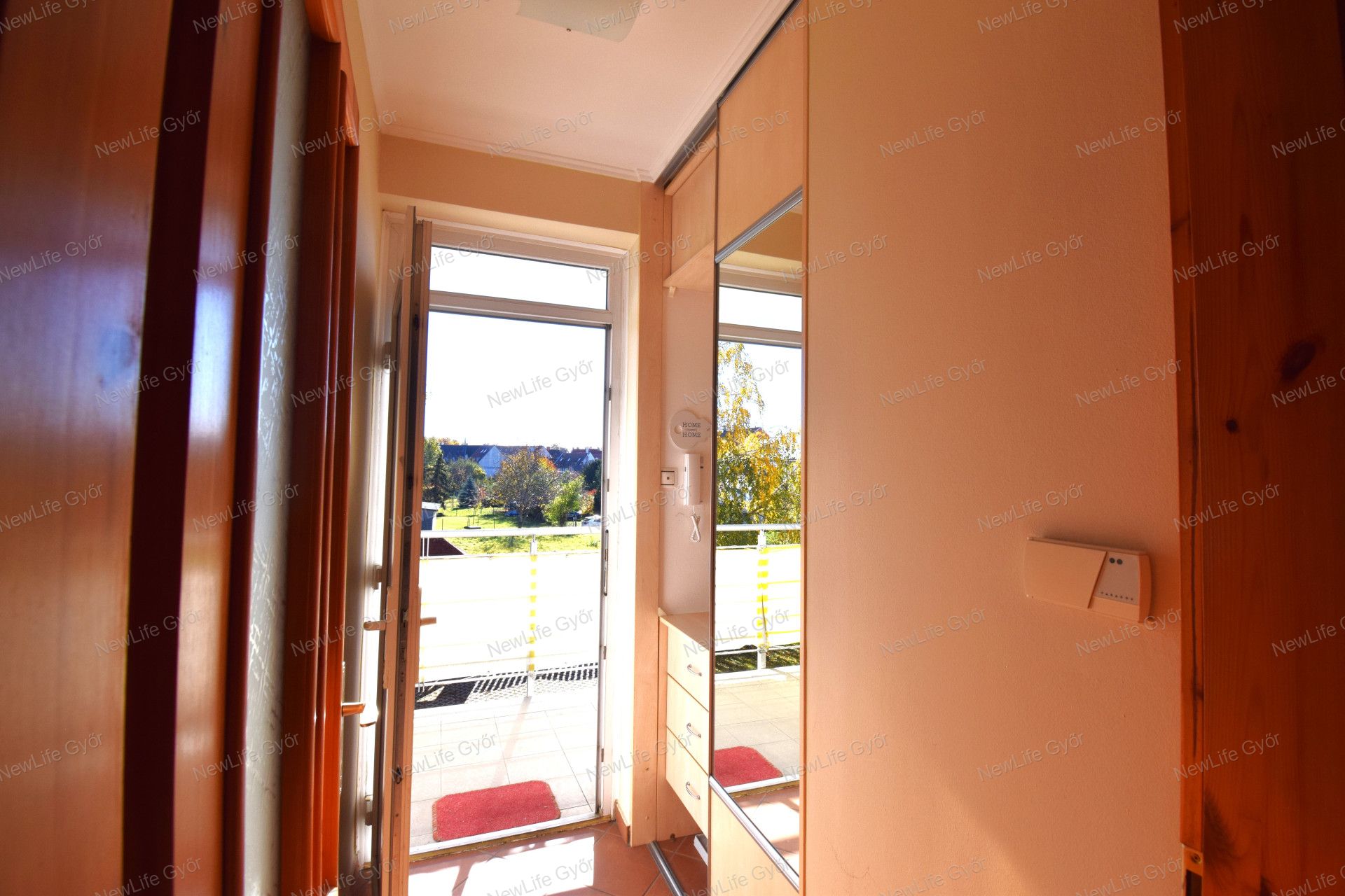 A ház falazata 38-as téglából épült 2003-ban homlokzati szigetelt vakolattal. A lakásról egy belső udvarra néző kinti gangról jutunk. A gangon egyedülálló kilátás nyílik egészen a Városházáig.