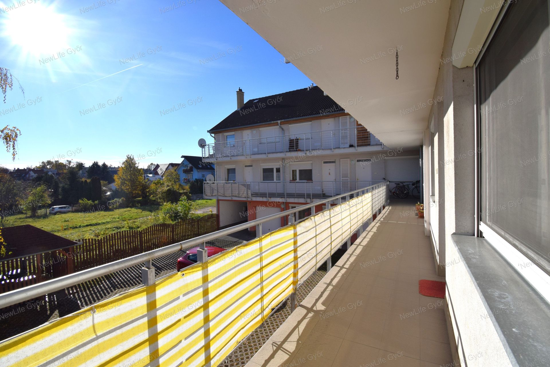 Az ingatlantól gyalog 10 perc alatt elérhető akár a belváros, az egyetem, karnyújtásnyira a töltés, a Püspök erdő, az Olimpiai Sportpark, Győr új uszodája az Aqua Sportközpont. A társasház belső, zárt udvarán kocsi beállókon kívül egy kis zöldövezeti játszótér is megtalálható. Itt a ház gyerkőcei szabadon játszhatnak együtt, ahová szinte az összes lakásból lelátni.