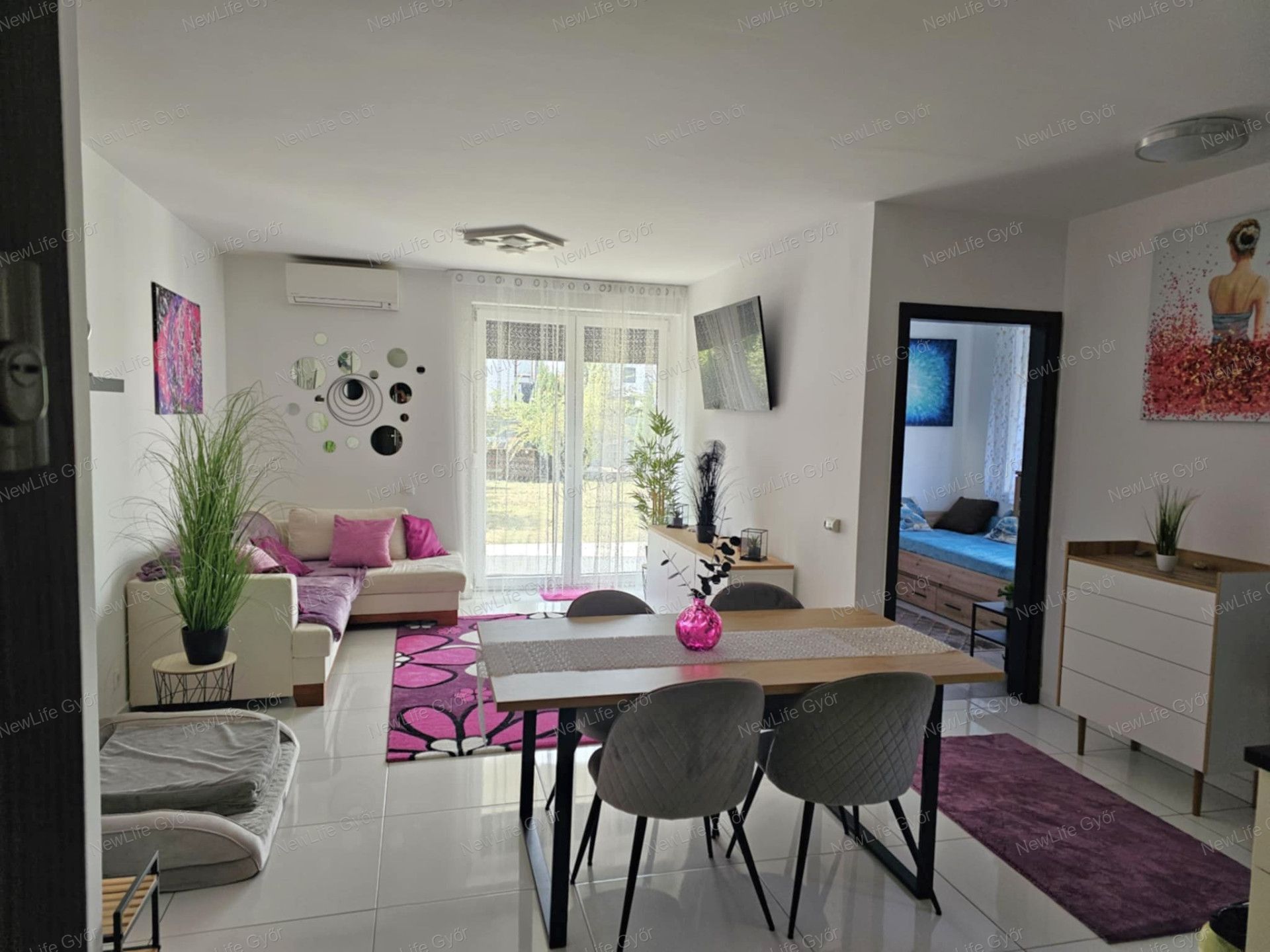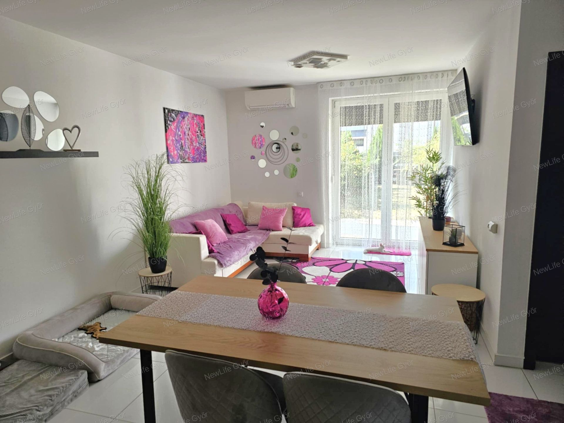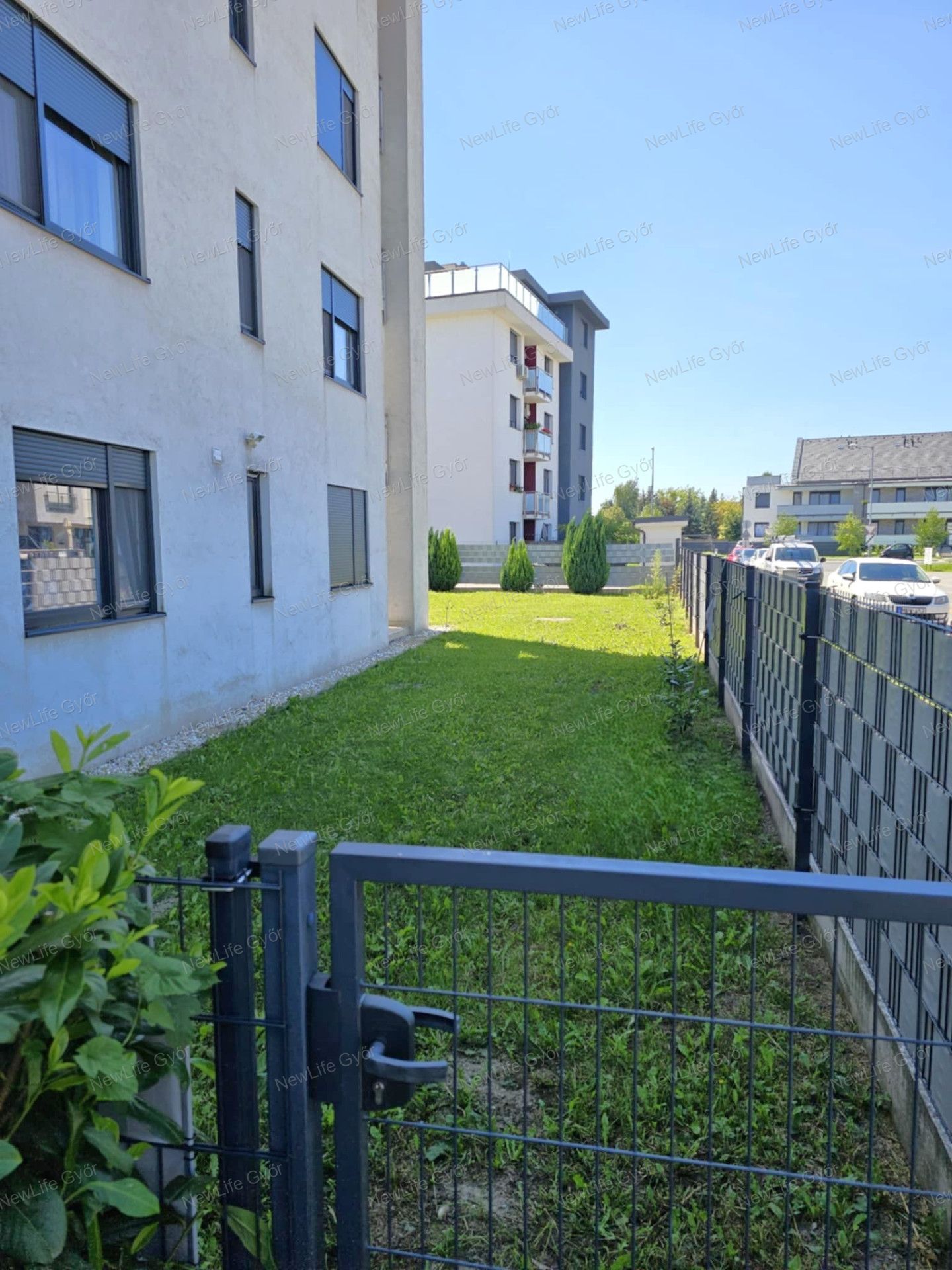 Újszerű, kertkapcsolatos, FÖLSZINTI lakás eladó Győr–Révfalu frekventált részén – saját parkolóval