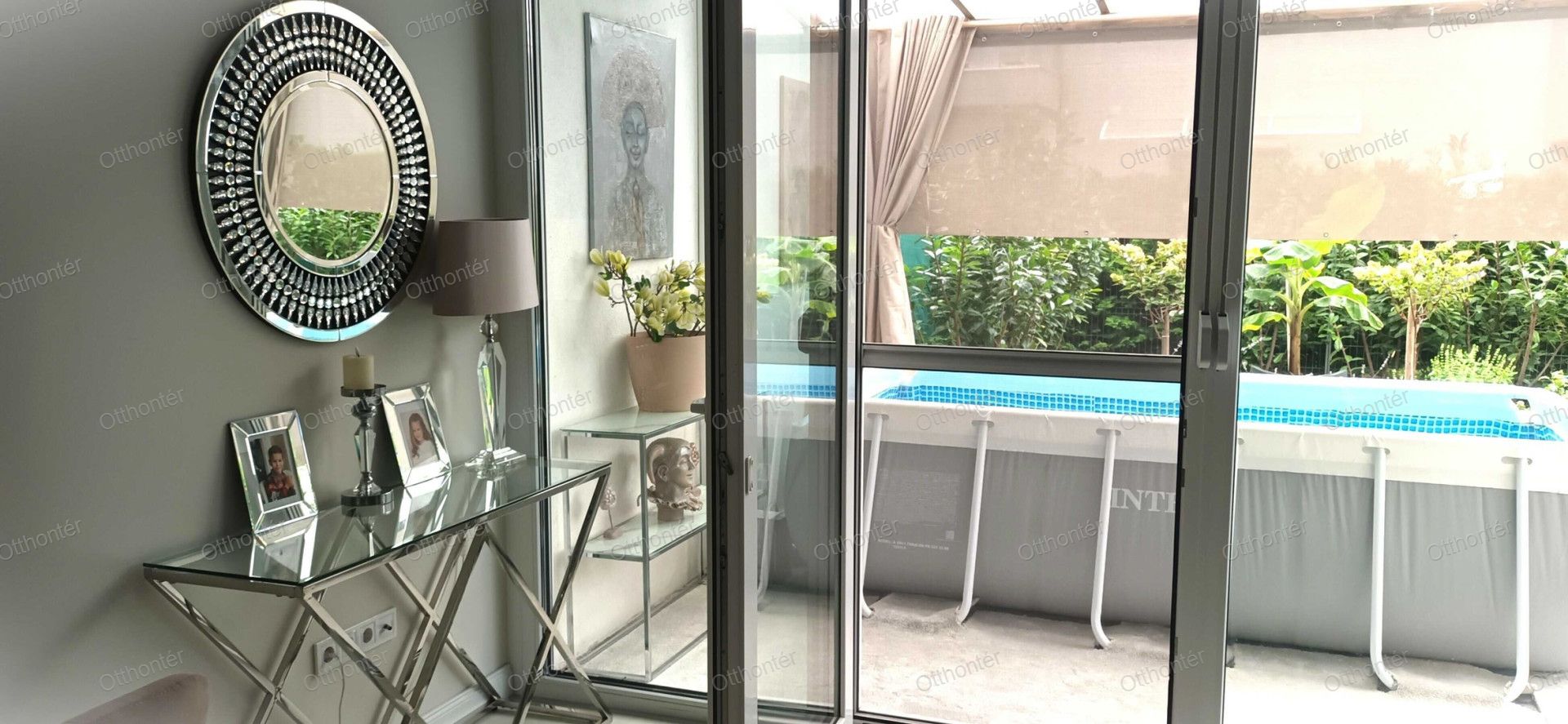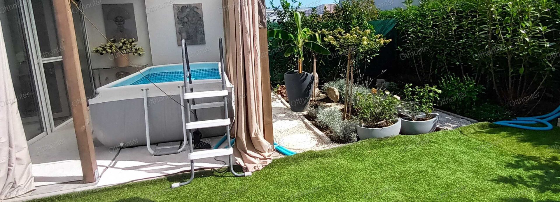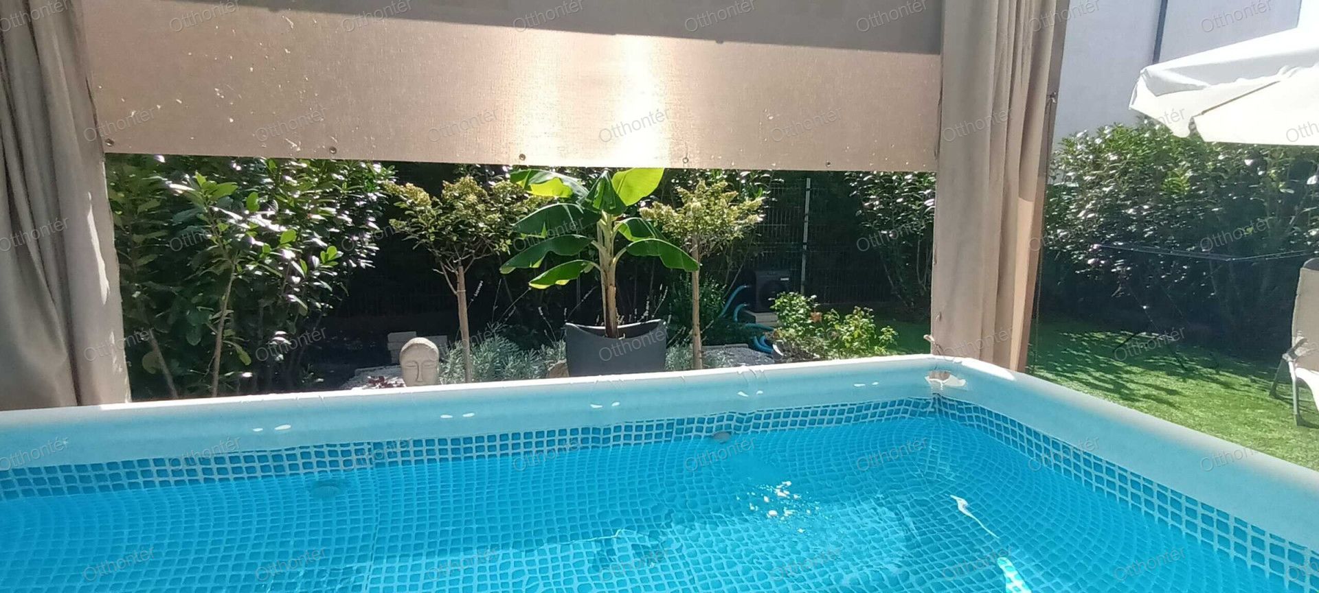 Saját kert és fedett terasz, épített medencével