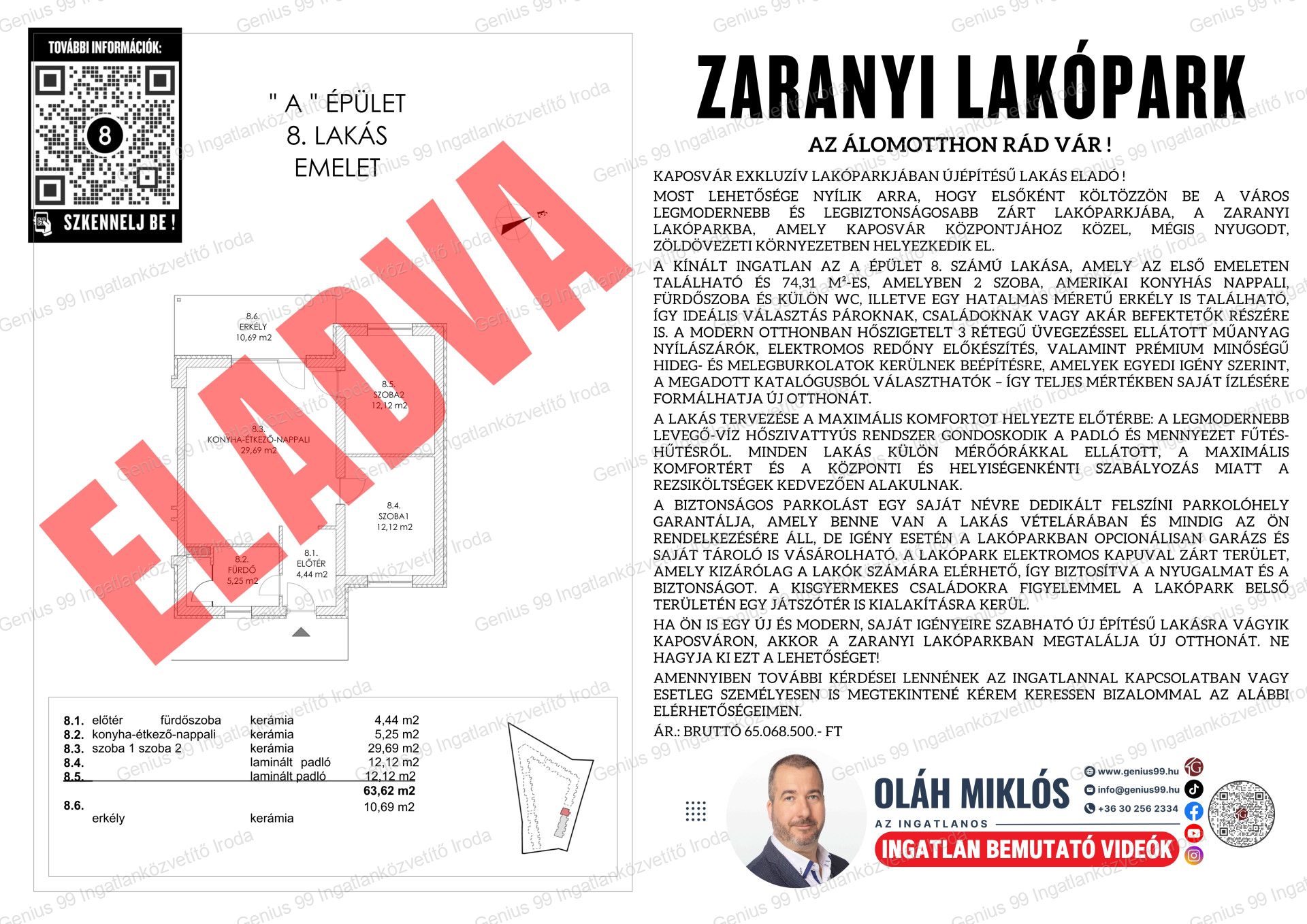Most lehetősége nyílik arra, hogy elsőként költözzön be a város legmodernebb és legbiztonságosabb zárt lakóparkjába, a Zaranyi lakóparkba, amely Kaposvár központjához közel, mégis nyugodt, zöldövezeti környezetben helyezkedik el.