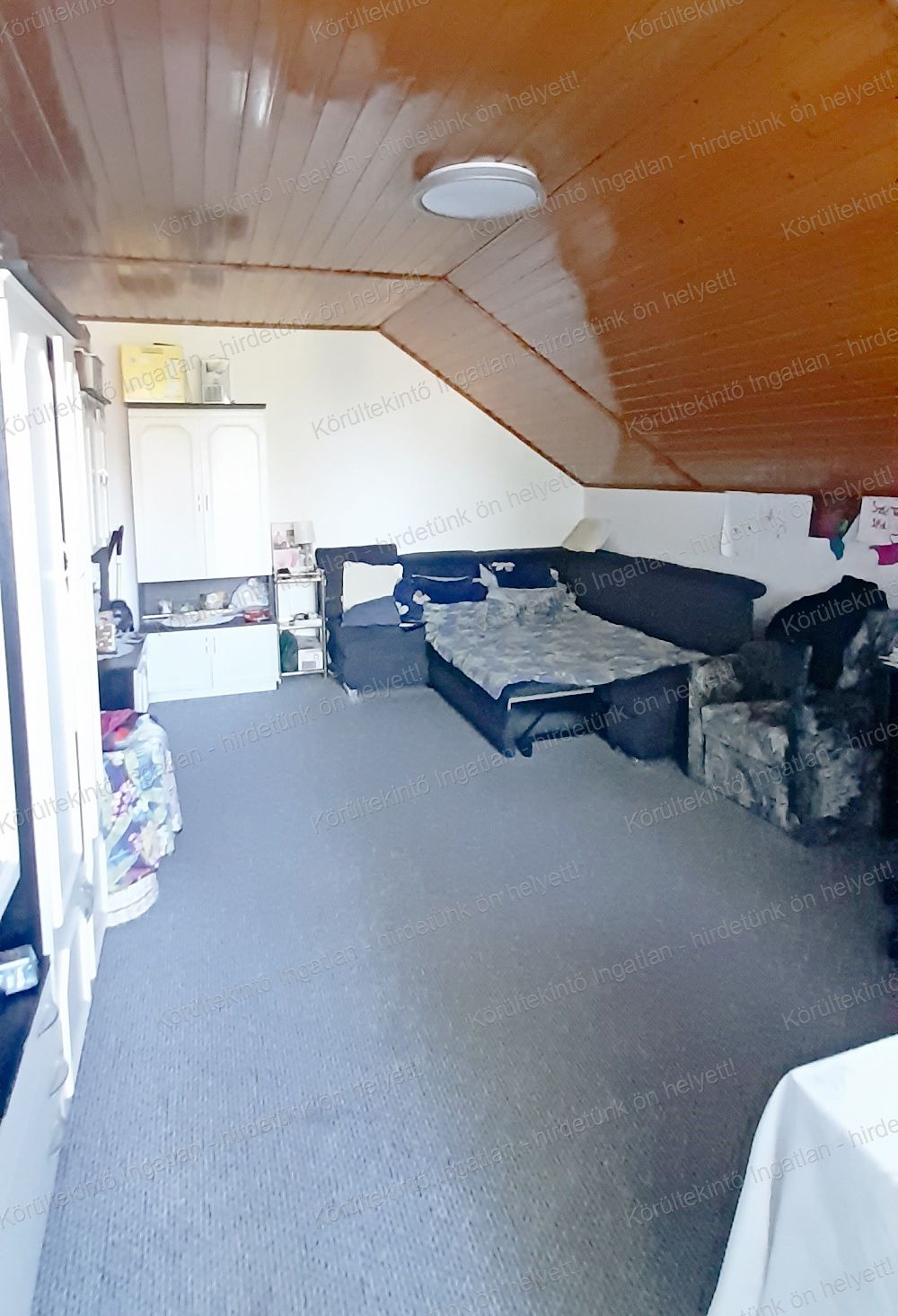 Leányfalu domboldalában családi ház felső lakása eladó.