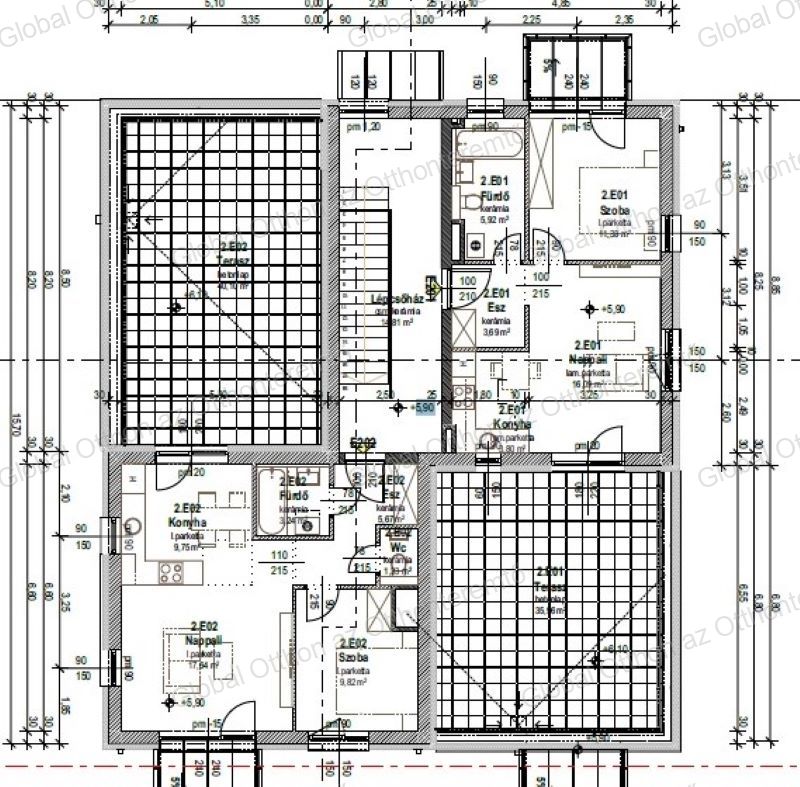 A penthouses lakás 42nm-es, felosztása: előtér, szoba, konyha-étkező-nappali, fürdő wc-vel, valamint egy 35 nm-es nagy terasz,mely ideális otthont biztosít pároknak vagy akár egyedülállóknak is.
