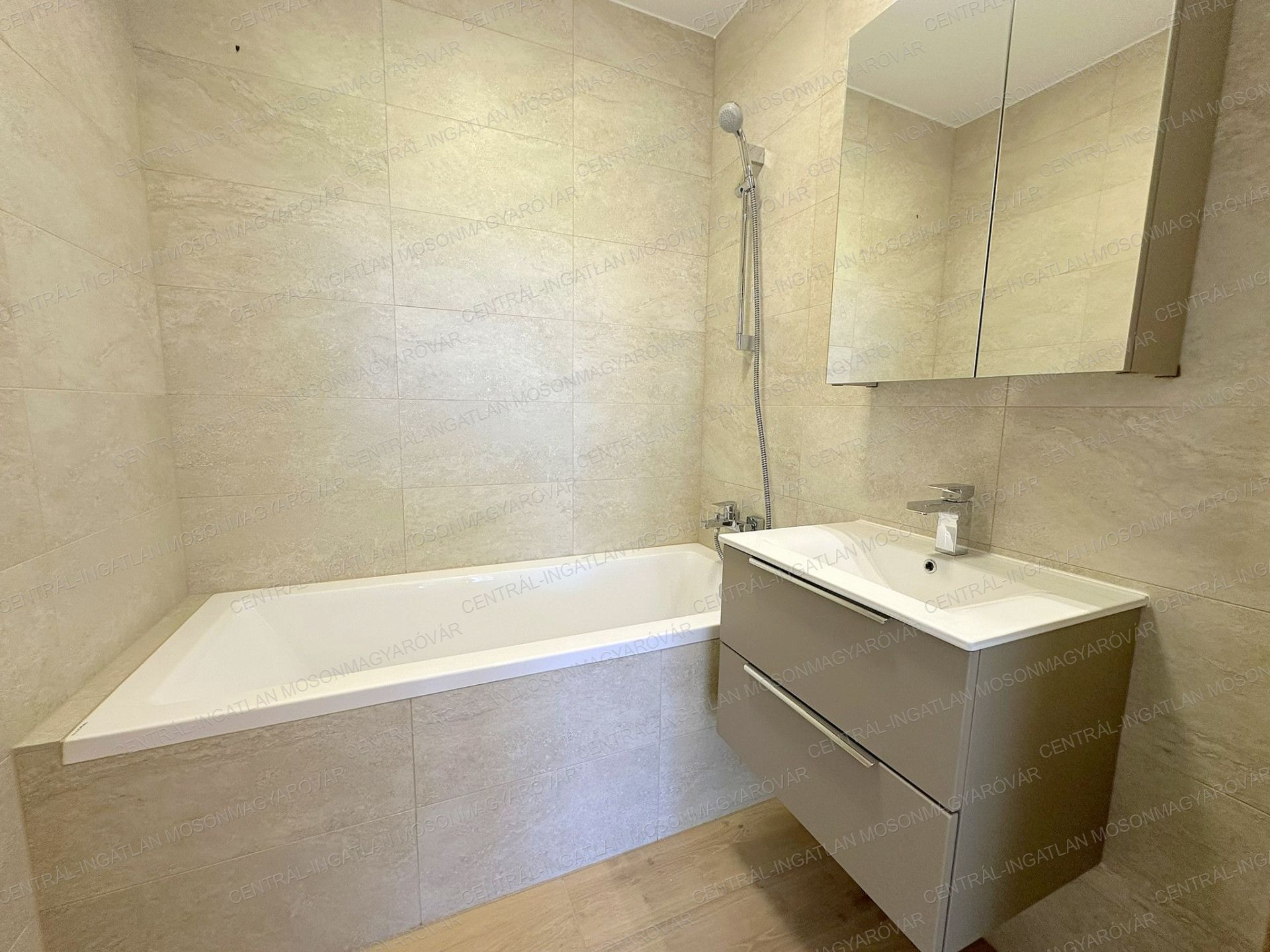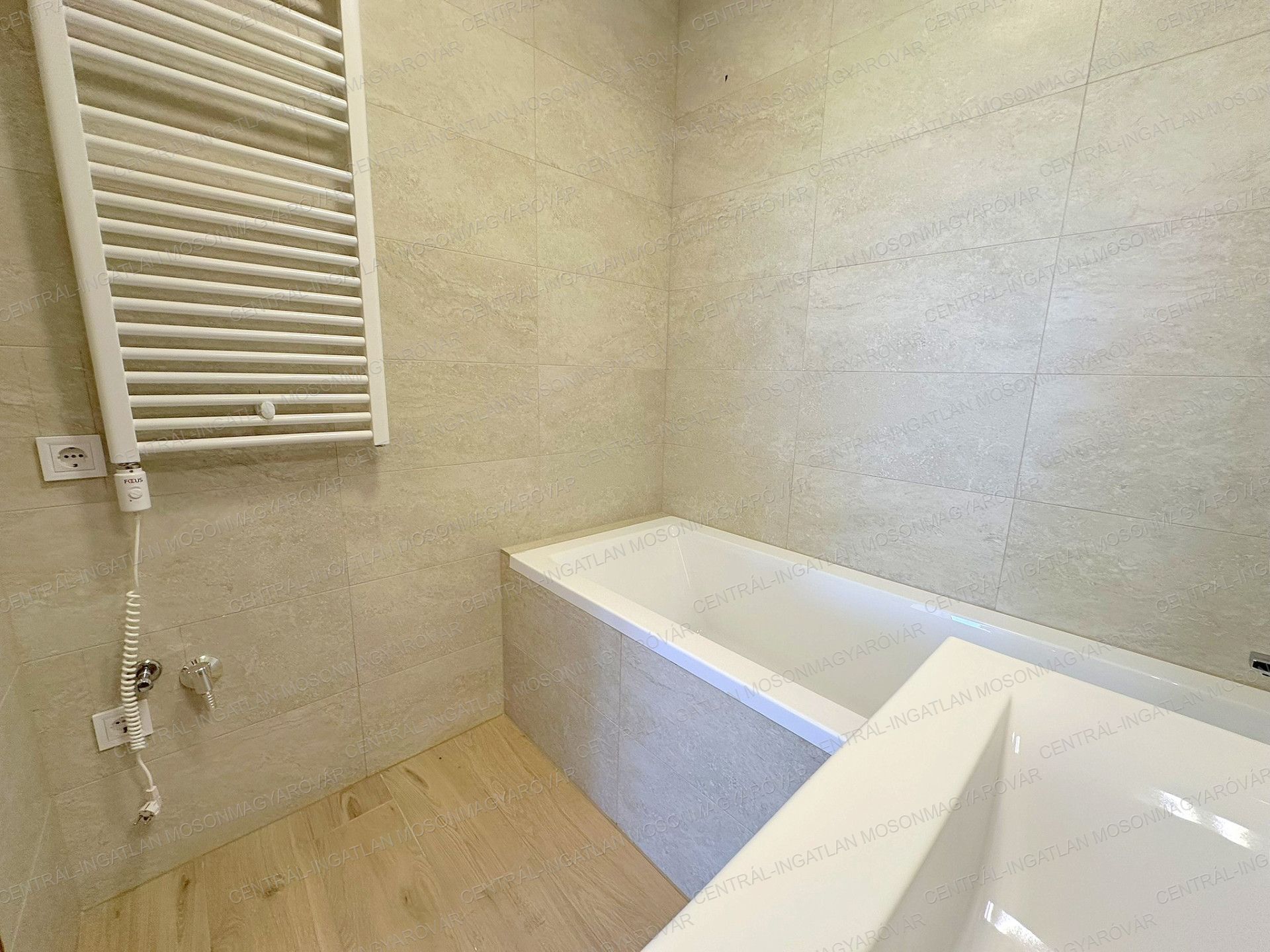 - A lakáson belül magas minőségű anyagokkal történt a befejezés. A padló mindenhol fa hatású járólap burkoltak, ami tartós és könnyen tisztán tartható. A wc és a fürdő plafonig csempézett, fürdőkáddal készült. Mosdók, csapok is minőségi termékek