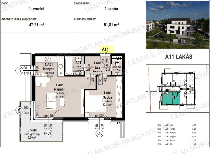 - A lakás hasznos alapterület 51.81 m2 (lakás határoló falain belüli terület + erkély fele). A lakás határoló falain belüli terület 47 m2, + sarokerkély 9.06 m2.