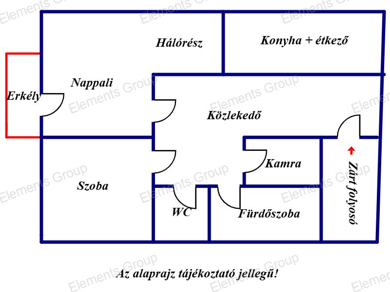 - saját zárt folyosórész + erkély,