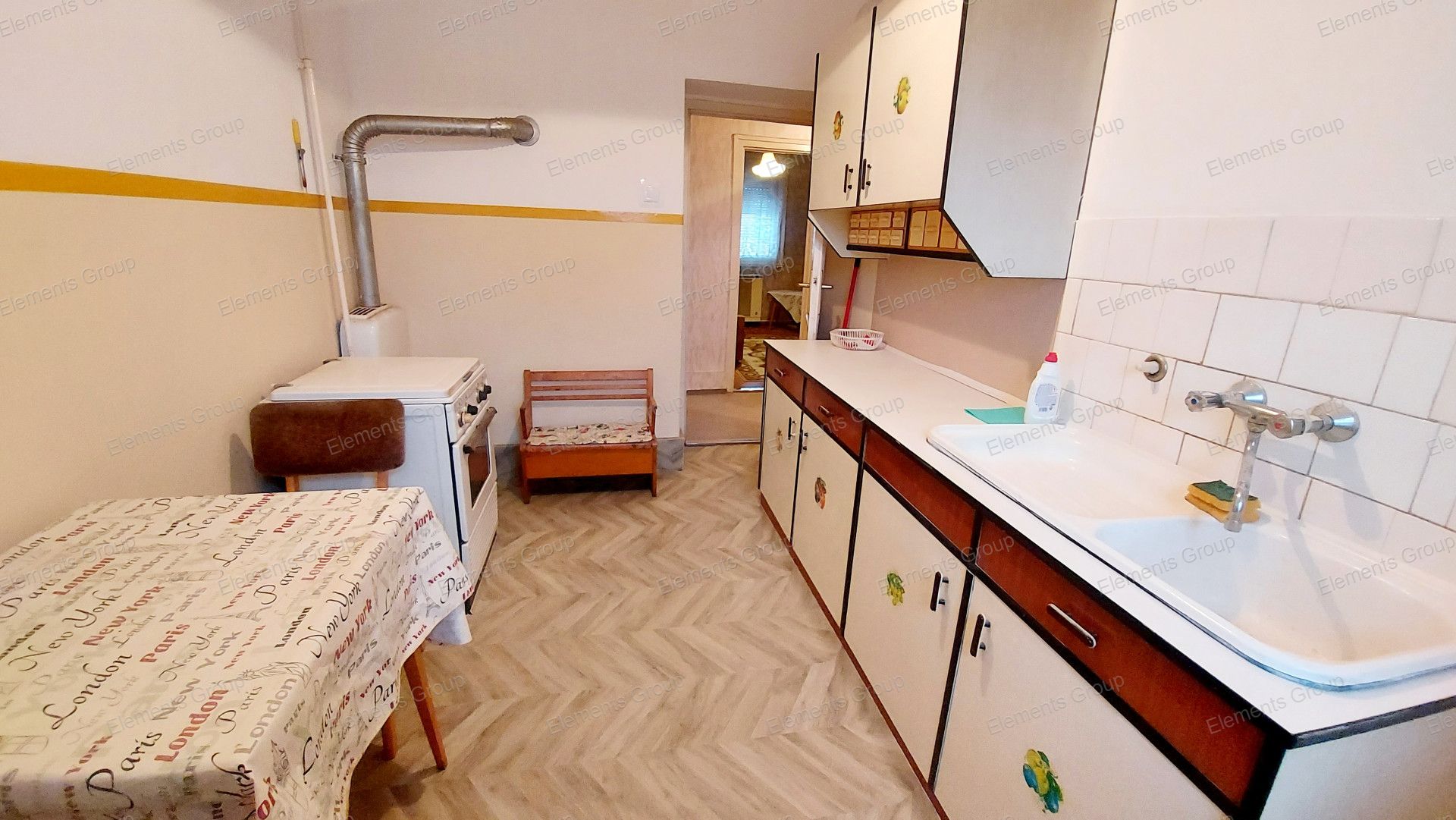 Élettér: 3 szoba, konyha + étkező, közlekedő, fürdőszoba, WC, kamra, erkély.