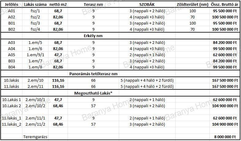 Emellett lehetőség van összesen 22 db teremgarázshely megvásárlására is, 8M forintos egységáron.