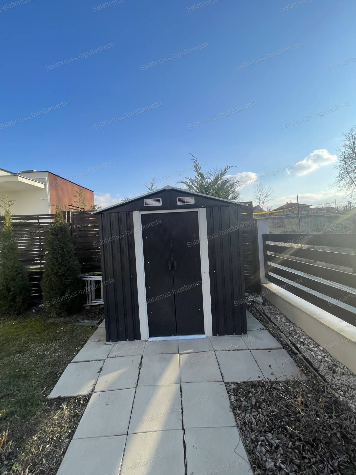 - A kertben kis tároló helyiség a kerti szerszámoknak