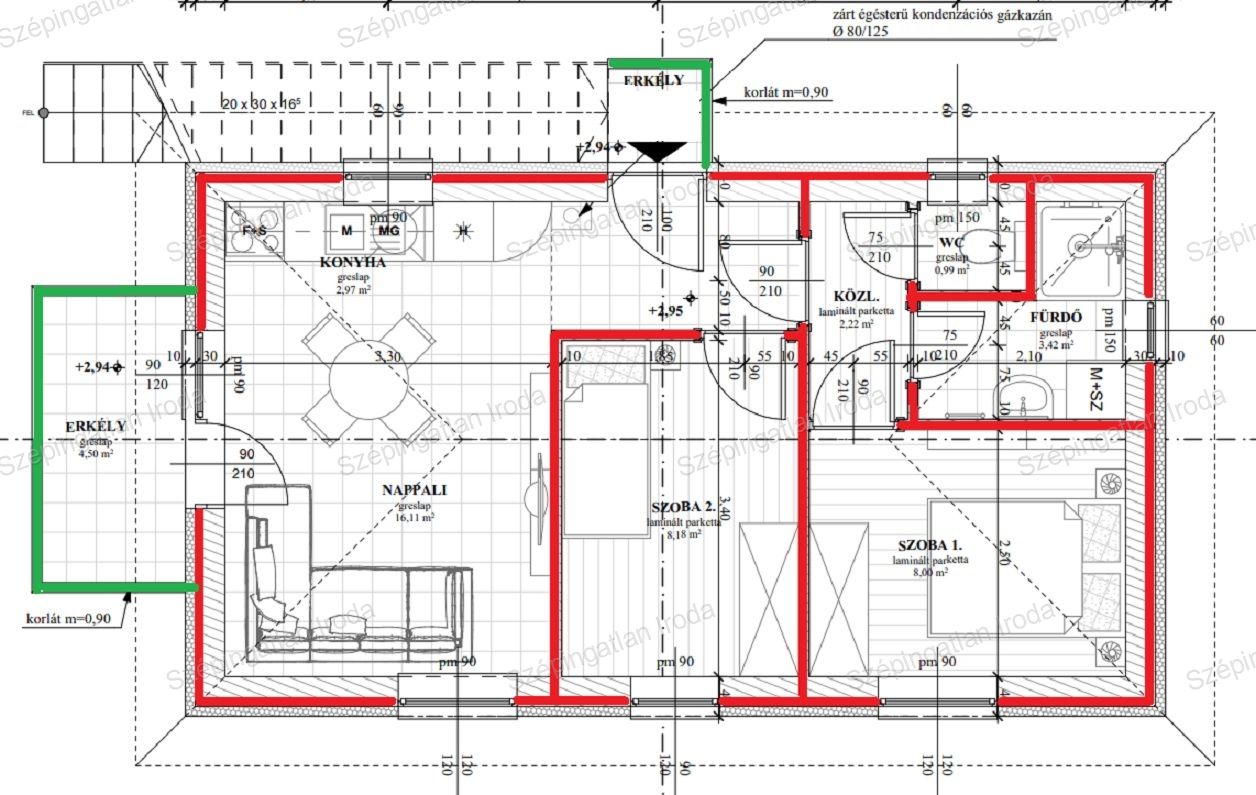 A Szépingatlan iroda eladásra kínál Sopronban, belváros közeli 2 lakásos épületben lévő, emeleti 42 m2-es, nappali + 2 hálószobás teraszos lakást. Az ingatlan építése során alkalmazott műszaki megoldások, valamint a felhasznált anyagok, burkolatok, nyílászárók, mind kiváló minőségben kerültek beépítésre. Belső kialakítása igényes, a burkolatok és a színvilág esztétikusan összeolvad a mai kornak megfelelő modern stílussal. A lakás beosztása ideális, a helyiségek az előszobából külön nyílnak. A nappalival egy légtérben található konyhában egyedileg tervezett modern konyhabútor és a beépített Elektrolux konyhagépek, valamint az egyéb beépített bútorok a vételár részét képezik. A zuhanyzós fürdőszoba és a WC külön helyiségben található. A fűtés saját gáz-cirkó kazánnal történik, a lakótérben padlófűtés rendszerrel. A tájolásnak köszönhetően a lakás világos vidám hangulatú. A víz- és az elektromos áram fogyasztás egyedi mérők alapján külön fizetendő. A korszerű hőszigeteléssel és a hőszigetelt műanyag nyílászárókkal az energetikai költség meglepően alacsonyan tartható. KÜLÖNLEGESSÉGE A PRAKTIKUS ELOSZTÁS MELLETT, A RITKASÁGNAK SZÁMÍTÓ, EGÉSZ LAKÁST KÖRÜLÖLELŐ SZÉPEN KARBANTARTOTT SAJÁT, LEKERÍTETT KERT, mely kiválóan alkalmas nyár esti pihenésre, grillezésre, baráti társaság fogadására. A meleg beköszöntével növények gondozásárban kerti csap áll rendelkezésre. Az ingatlan gyalogosan és autóval is könnyen megközelíthető. Tartozik az árban az épület előtt 1 db autóbeálló. Ilyen lakáshoz hozzájutni Sopron területén igazán kivételes és ritka lehetőség. Ha késlekedik könnyen lemaradhat róla! Ára: 51,3 mFt