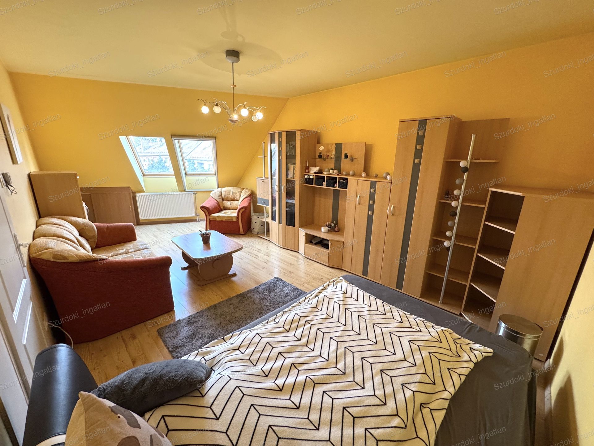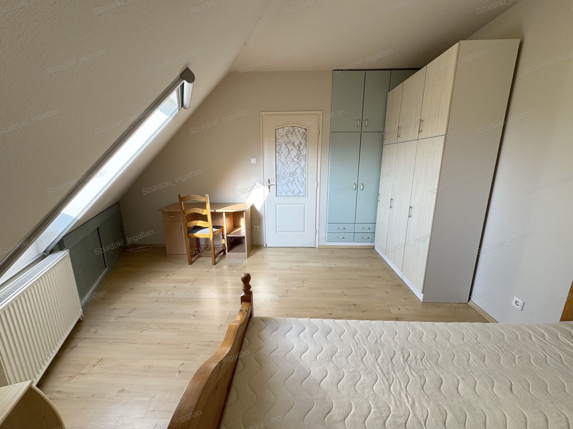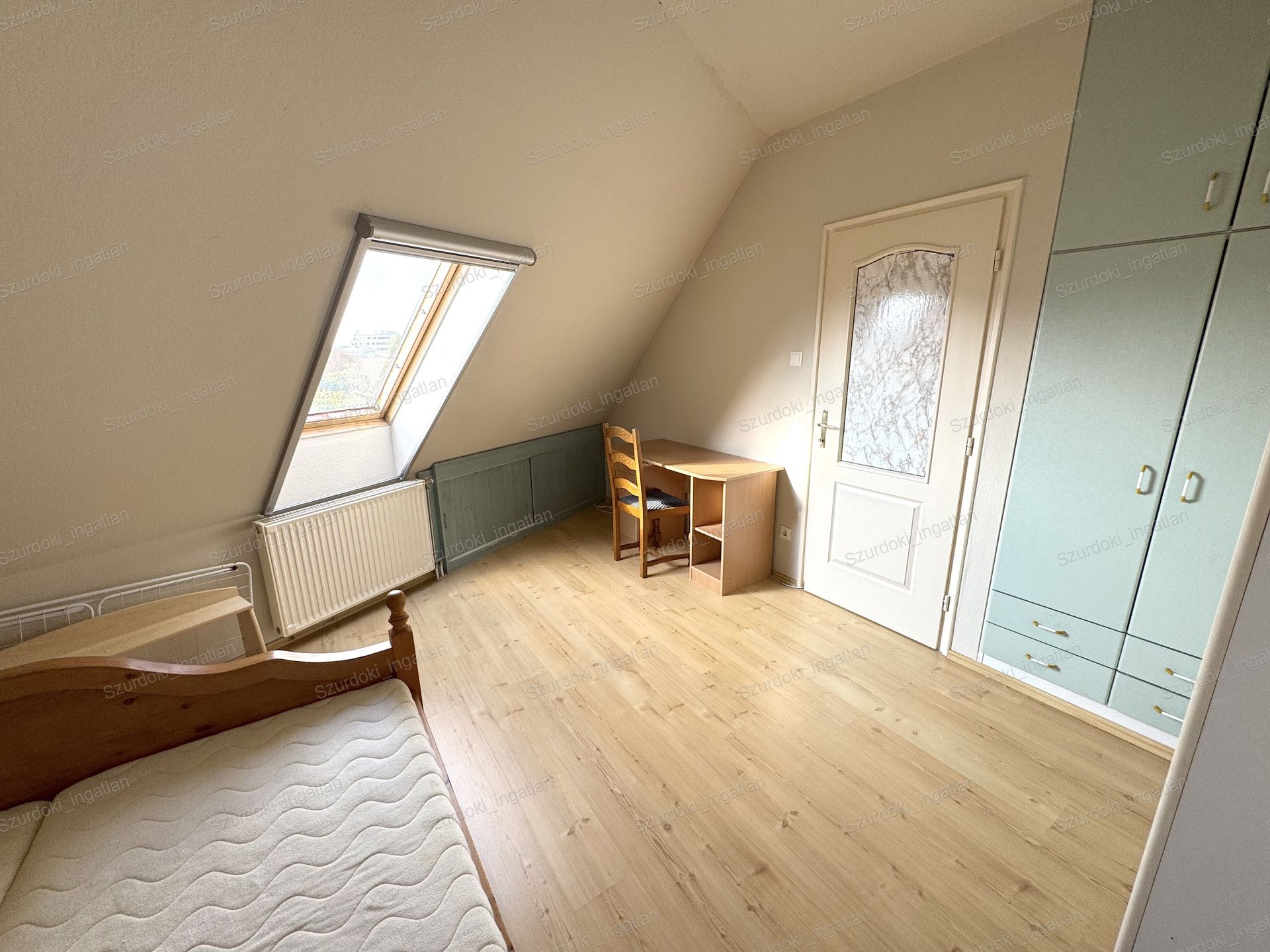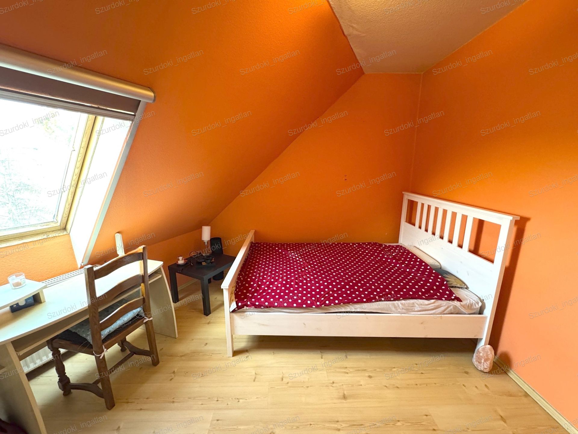 Nyílászárók: dupla üvegezéssel ellátott Velux ablakok, fényzáró rolóval ellátva