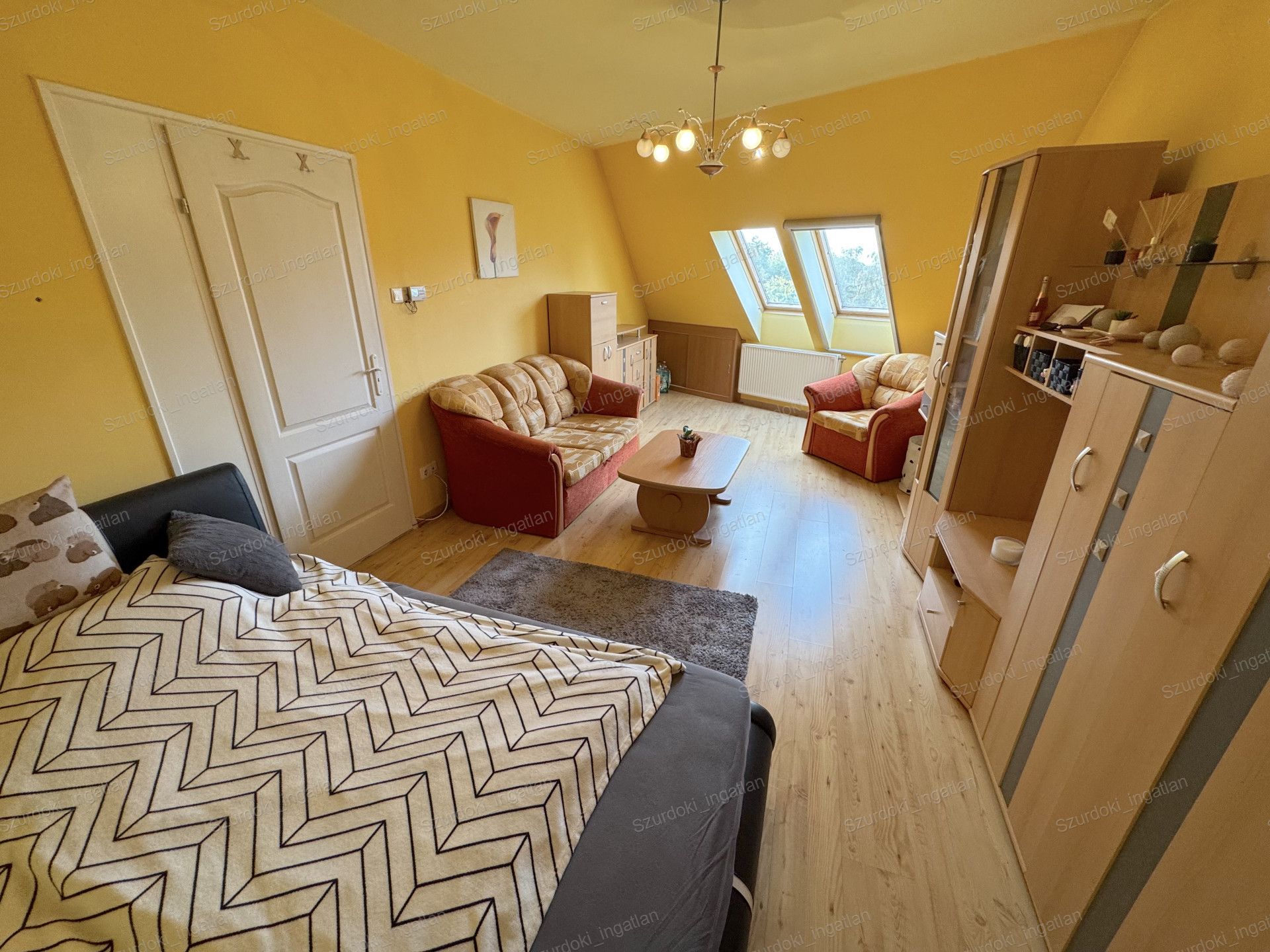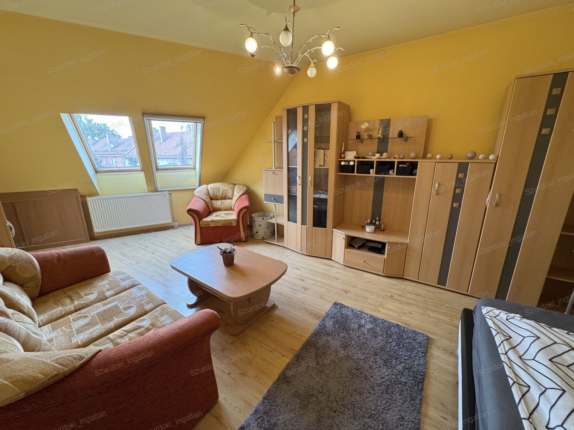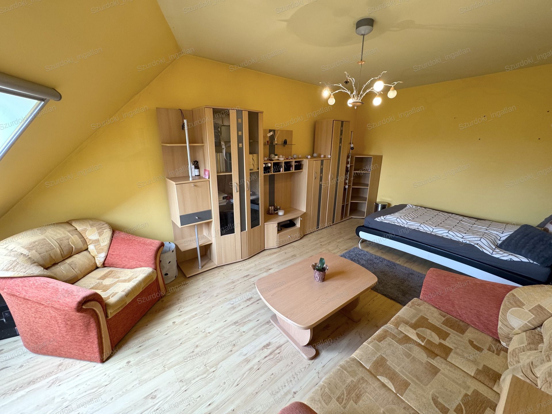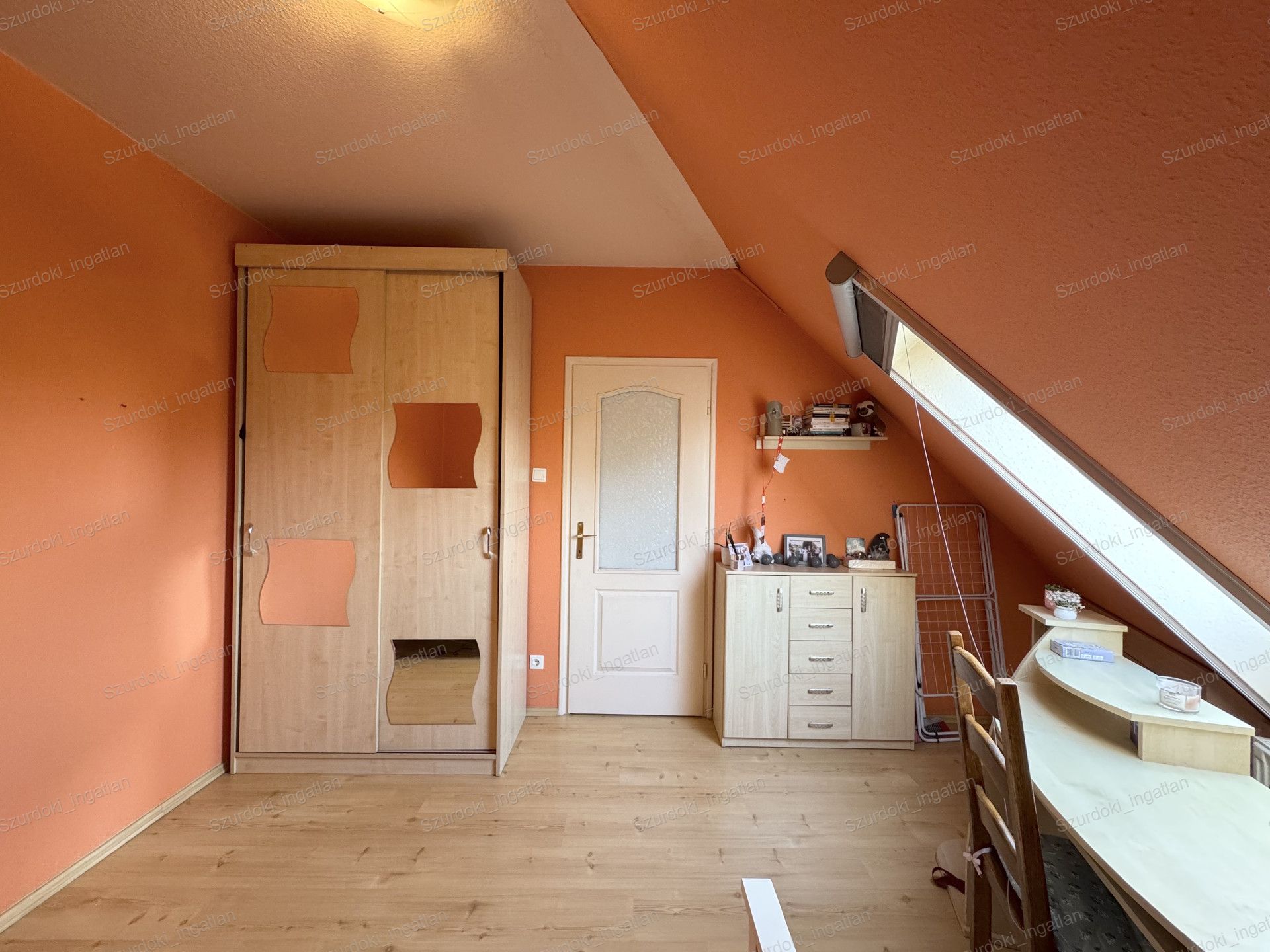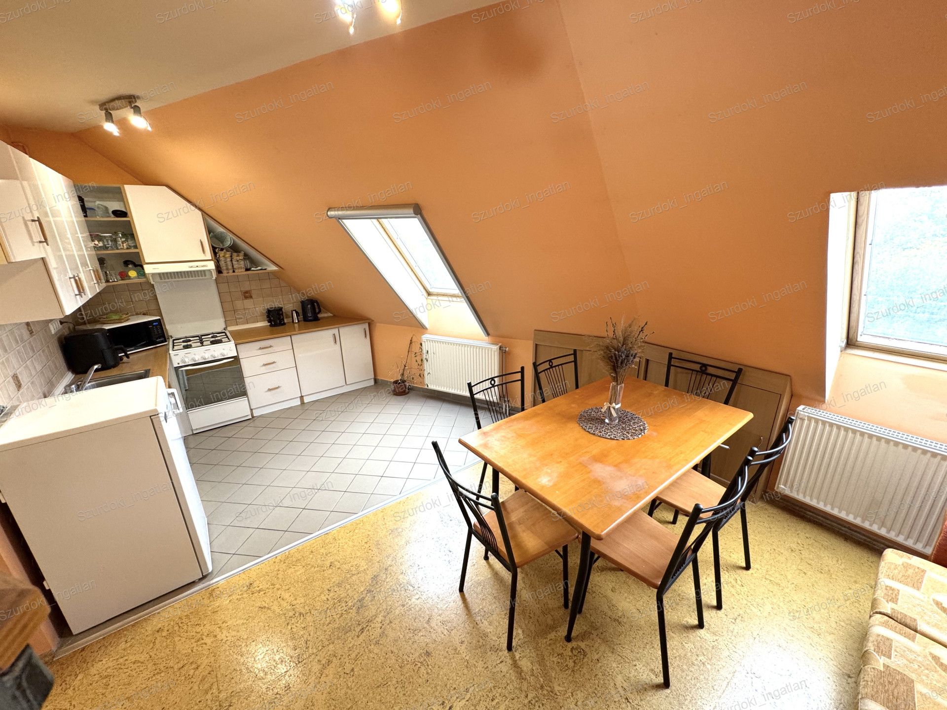 Nyílászárók: dupla üvegezéssel ellátott Velux ablakok, fényzáró rolóval ellátva