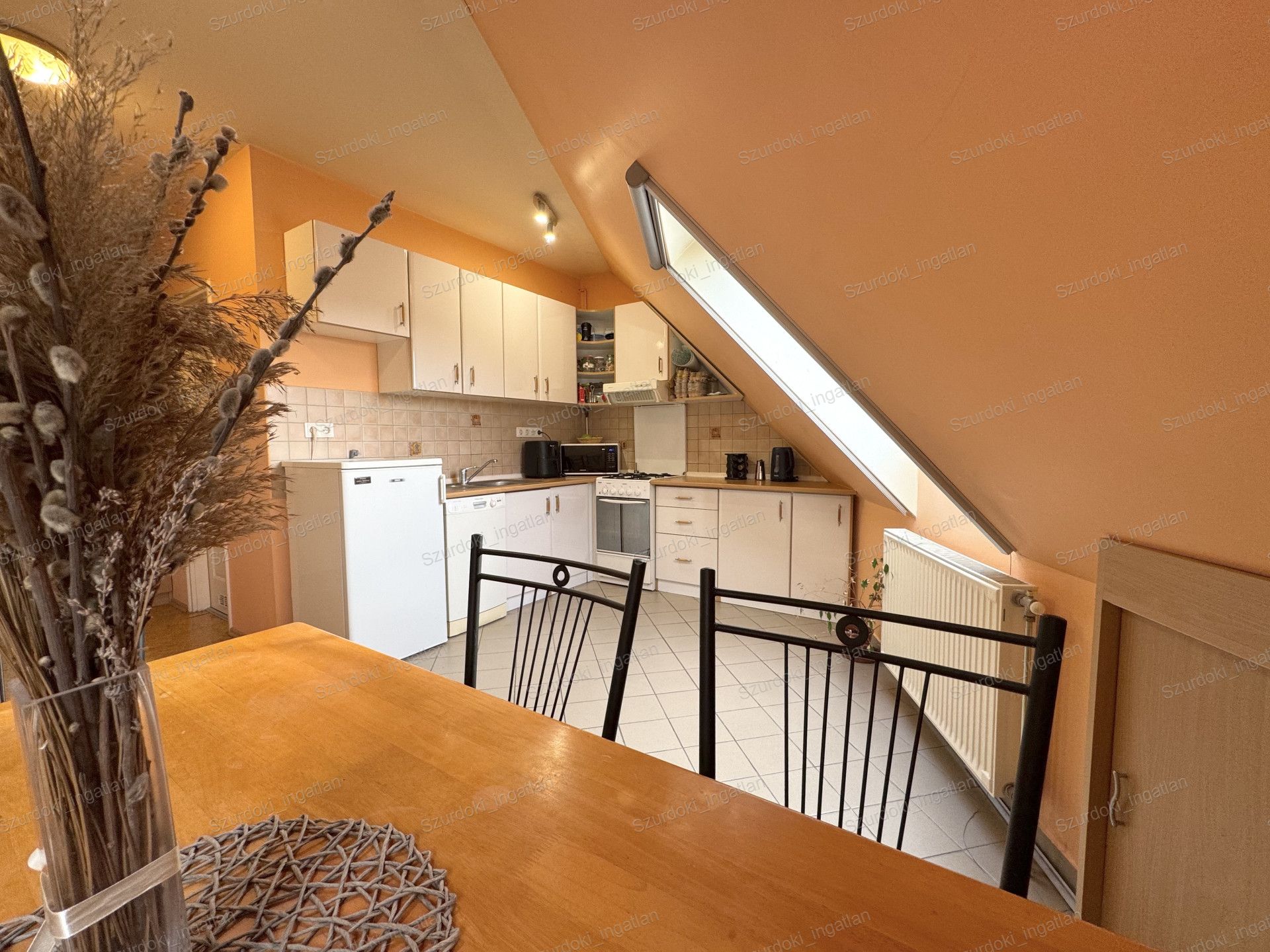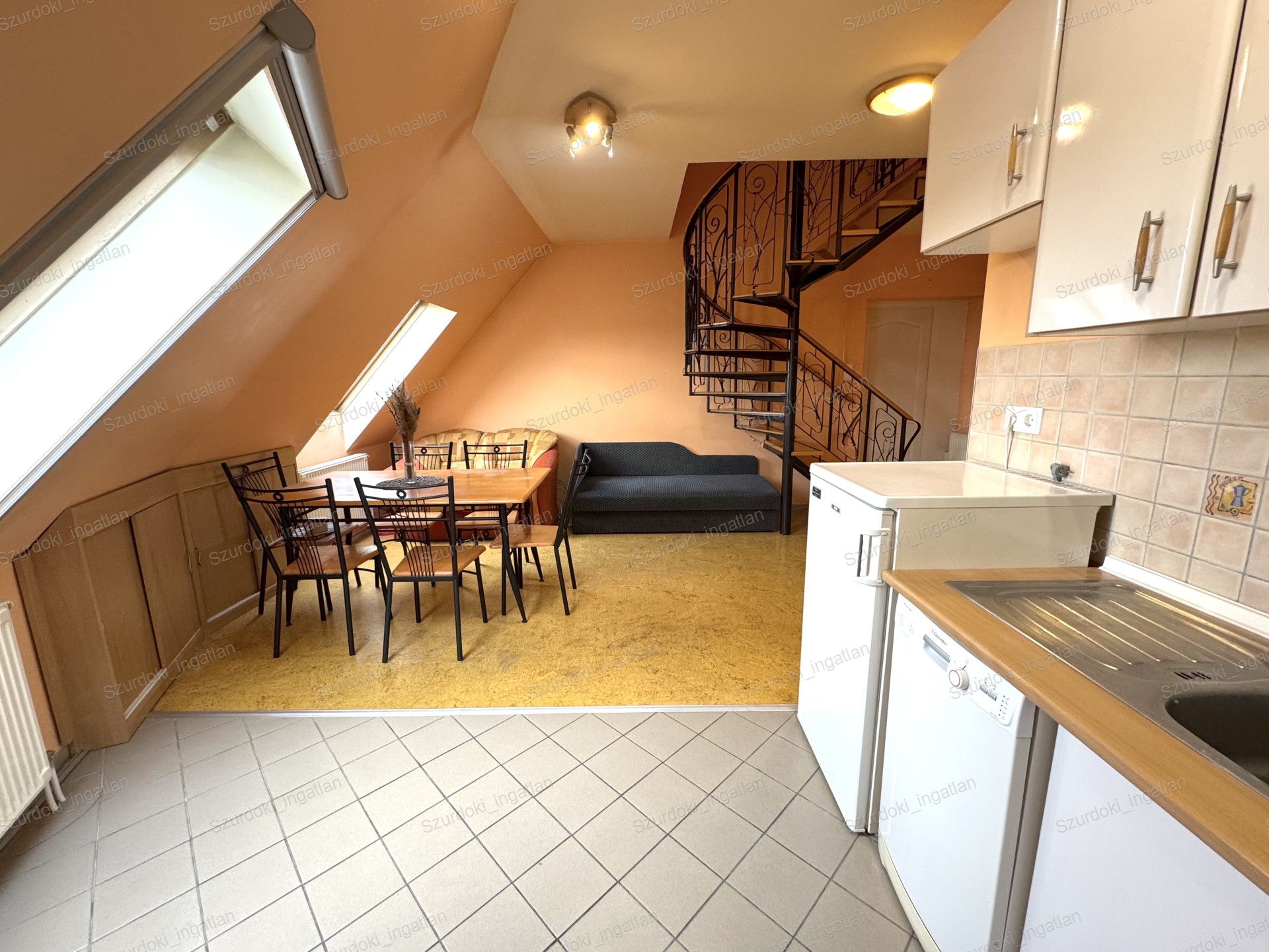 A társasház egy 473 m²-es telken helyezkedik el, melynek belső udvara rendezett, lépcsőháza rendszeresen karbantartott. A lakóközösség igényes és odafigyelő, ami jól érezhető az épület állapotán is. Az ingatlanba belépve egy tágas tér fogad minket. Balra a fürdőszoba és a konyha, szemben pedig az étkezős, amerikai konyhás nappali kapott helyet. Jobbra található egy külön nyíló hálószoba, valamint a felső emeletre vezető lépcsősor. Az emeleten további két különnyíló hálószoba biztosít kényelmes életteret. A nyugati tájolásnak köszönhetően a lakás délutánonként kellemesen világos és napfényes, a tetőtéri ablakokon keresztül pedig mindig természetes fény árad a terekbe. A Velux tetőtéri ablakok dupla üvegezésűek, fényzáró rolóval felszereltek, így a komfort garantált.
