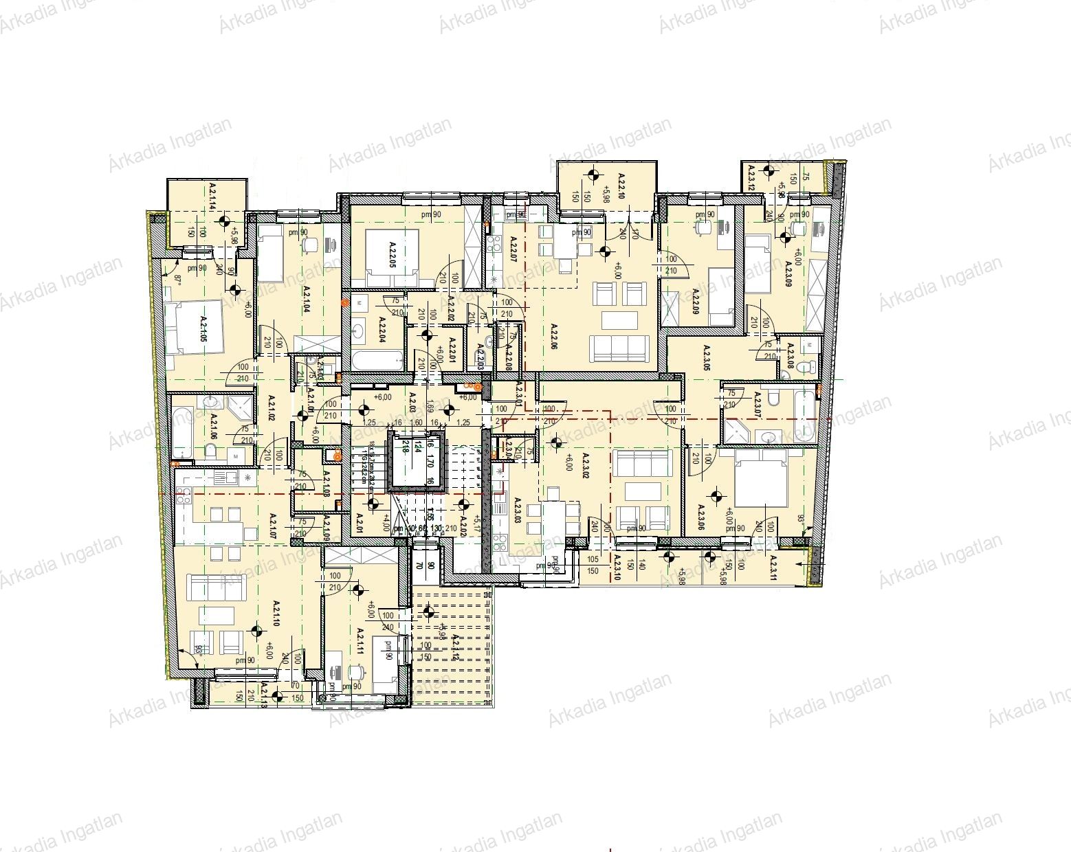 Az építésitelek 1415 m2, melyen “A” épület 10 lakás és “B” épület 9 lakás kerül kialakításra.