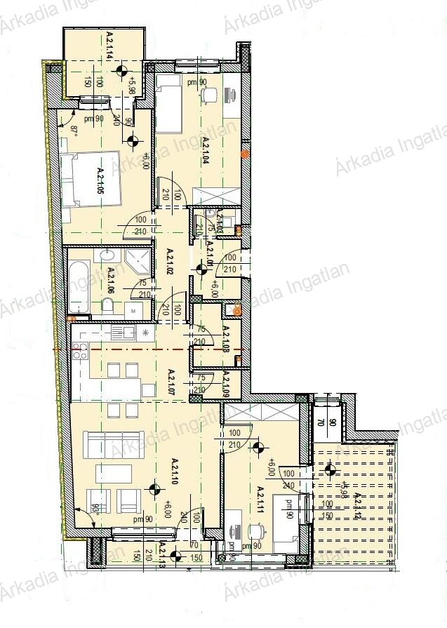 2em.: 88 m2 + 20 m2 terasz, 63 m2 + 6 m2 terasz, 78 m2 + 12 m2 terasz