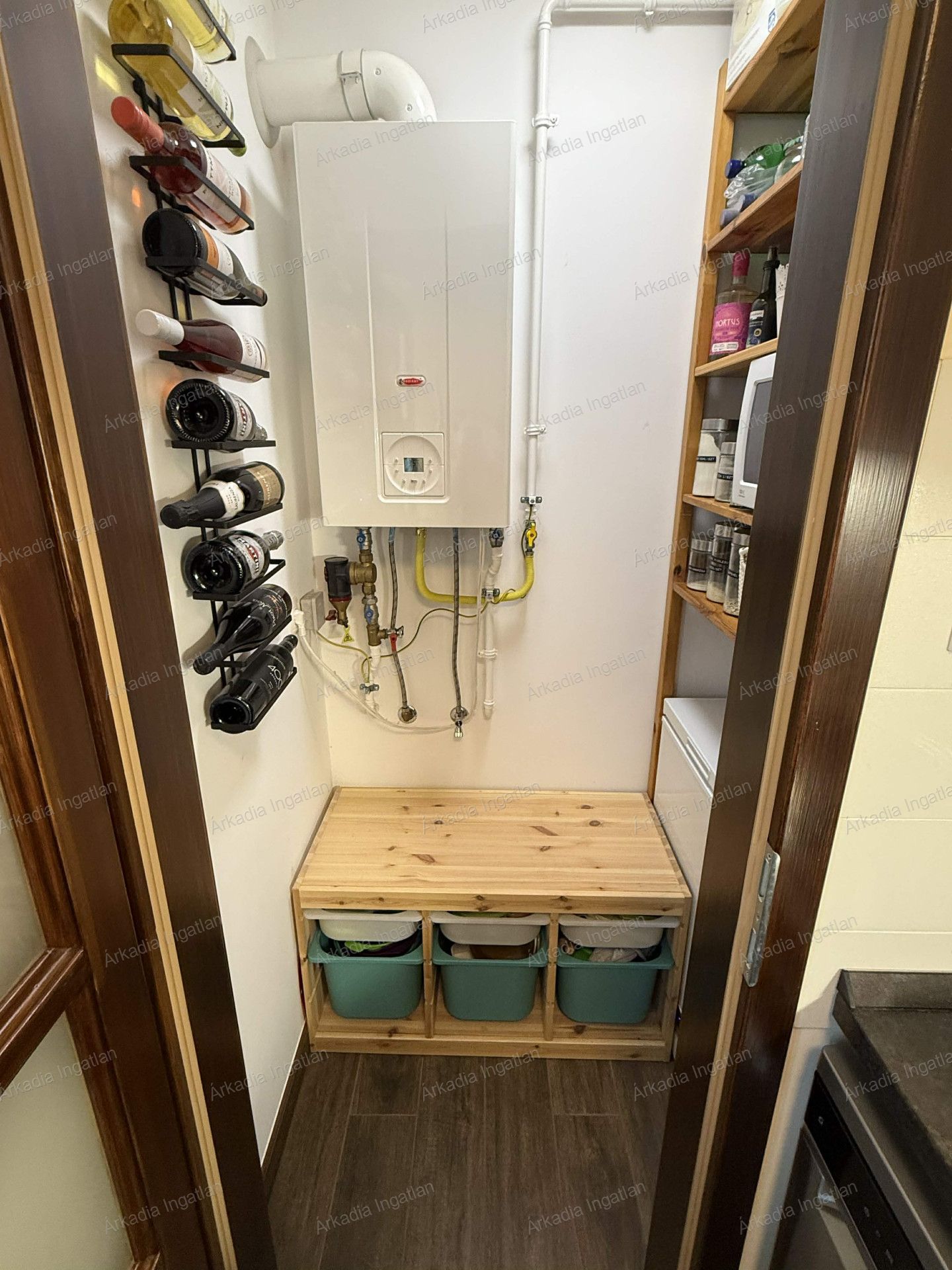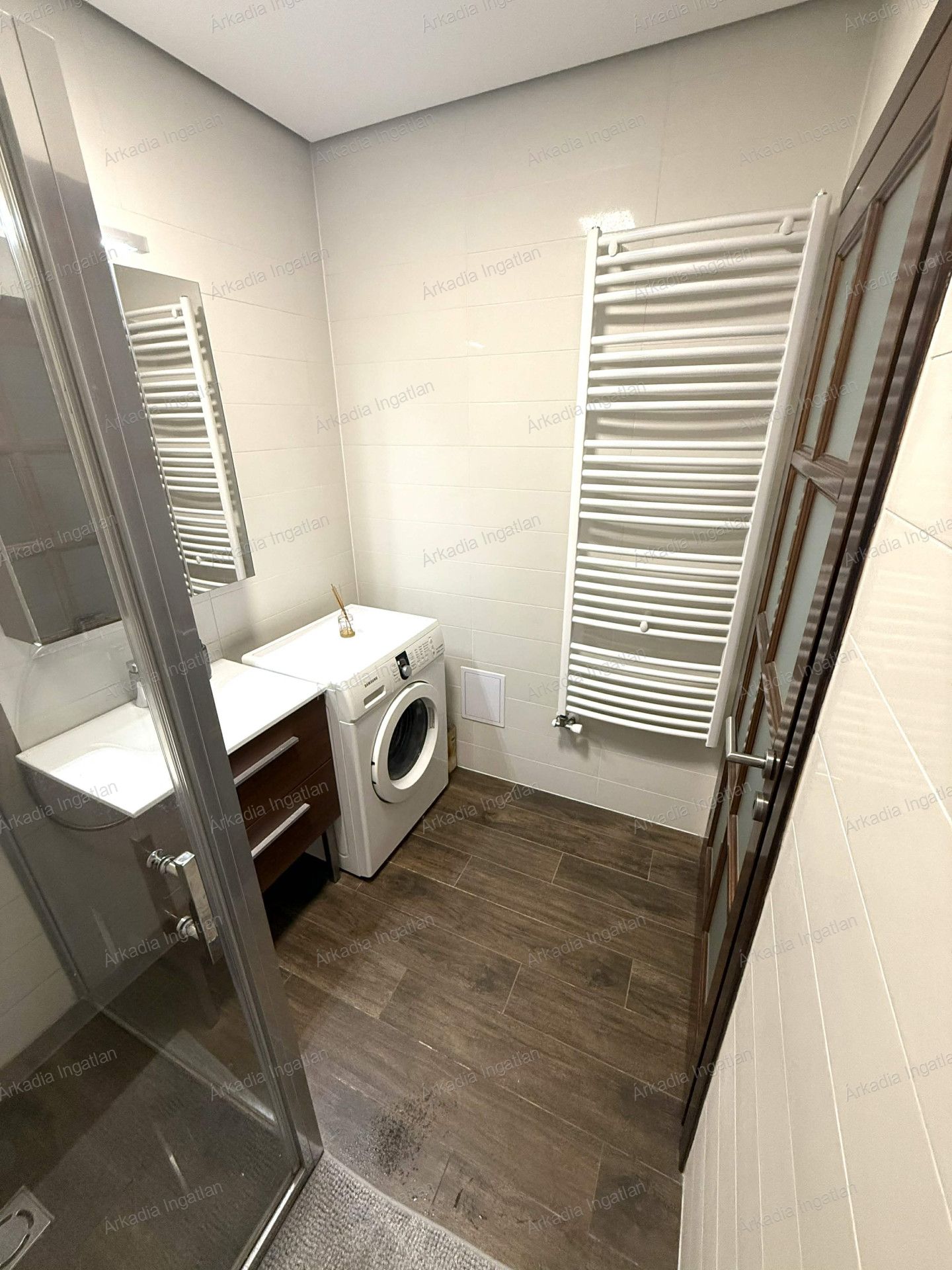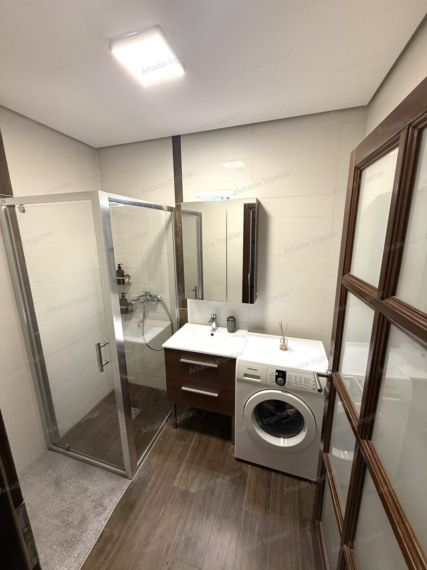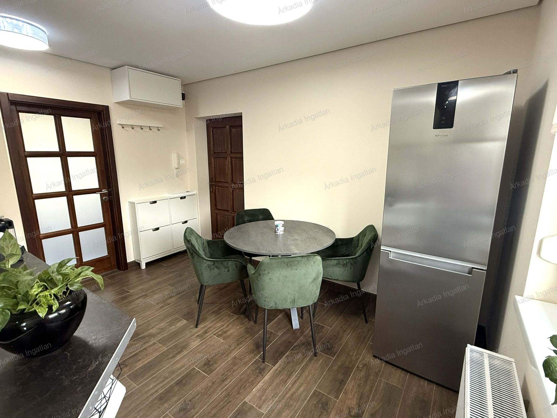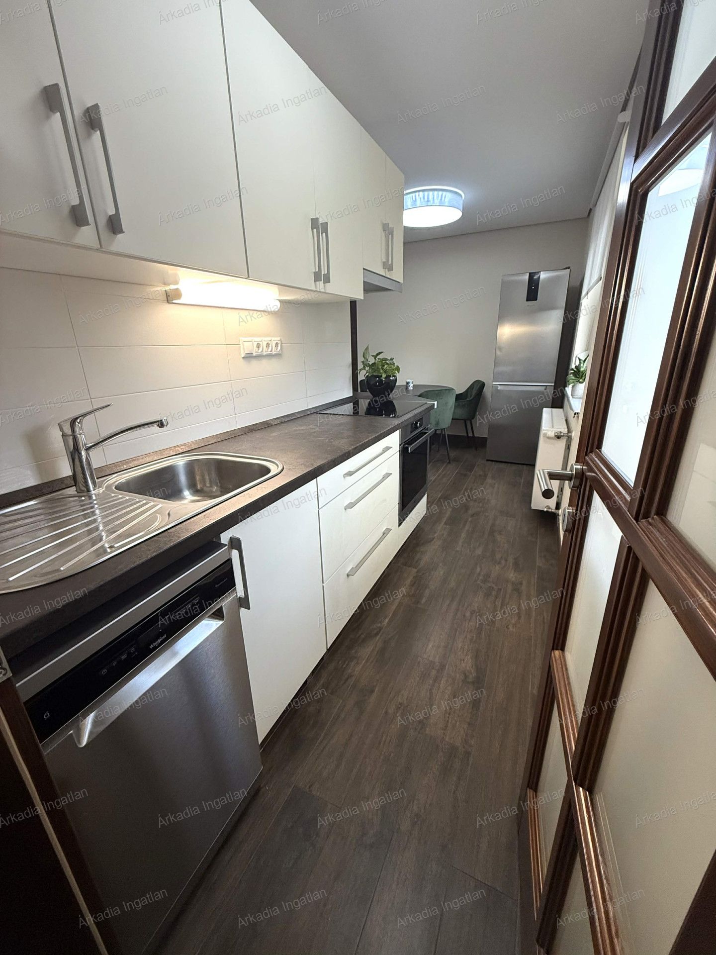 A konyha Whirlpool 6th Sence háztartási gépekkel felszerelt: hűtő, sütő, mosogatógép, indukciós főzőlap, melyek garanciálisak. A bútorok magas minőségű, igényes darabok.