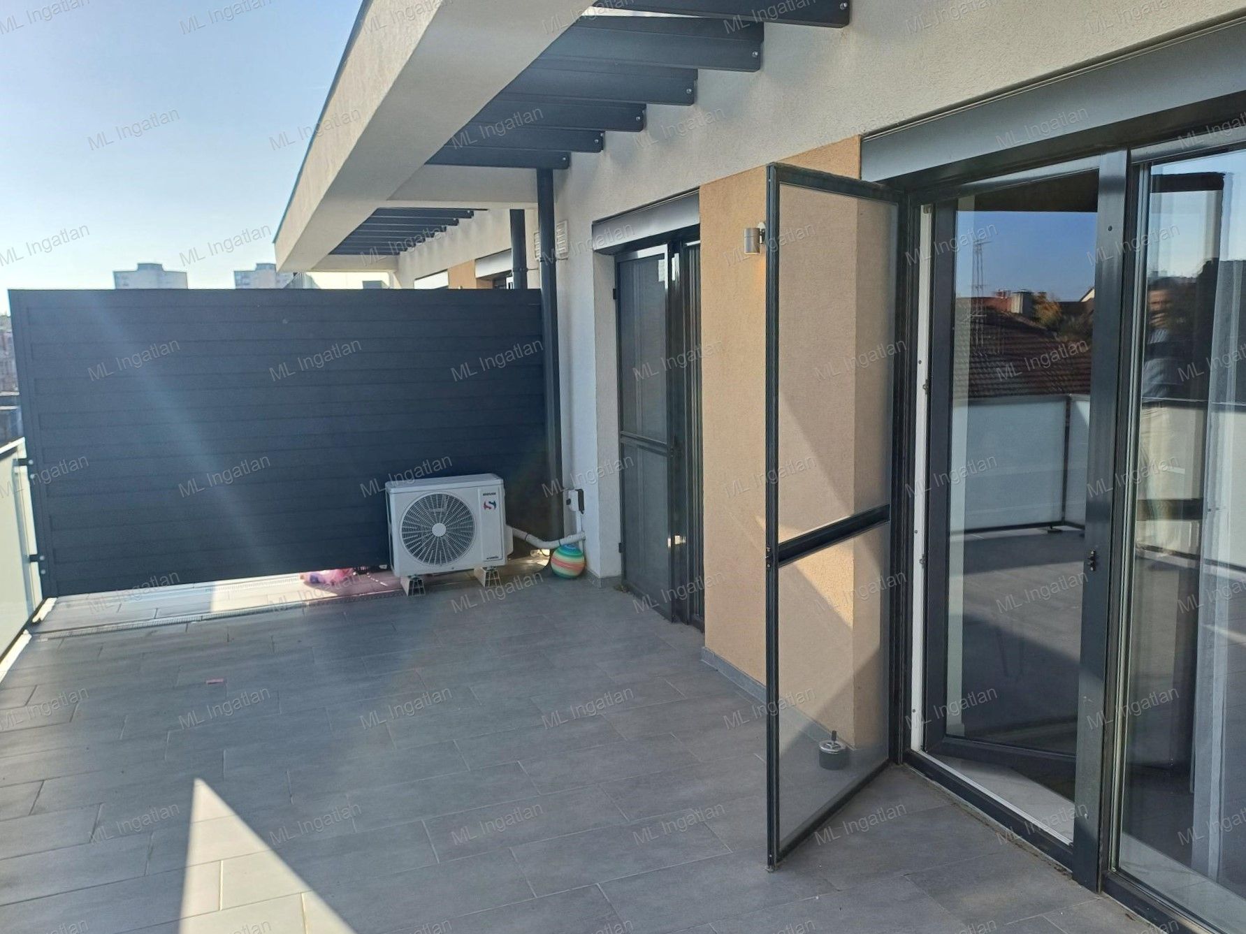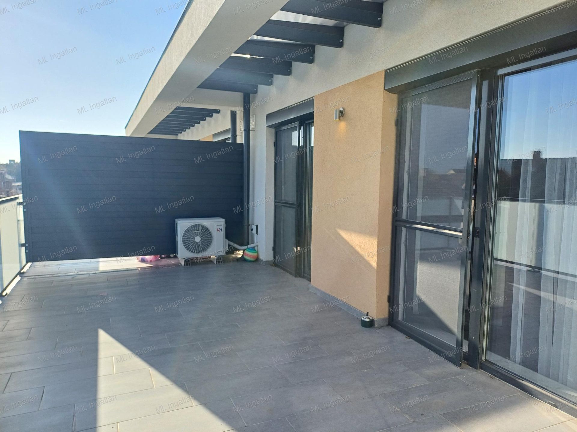 A nappaliból kiléphetünk a 22 m2-es félig fedett teraszra. A kilátás félpanorámás, városra néző. A lakás kiemelt részén elfér egy jakuzzi, egy grillsütő, napozó ágyak és kertibútor szett is.