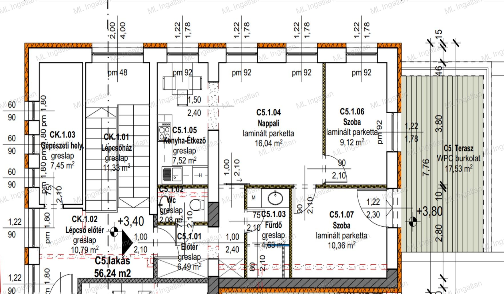 A padlóburkolatot, a csempét, a járólapot és a szanitereket a vásárló választja ki.