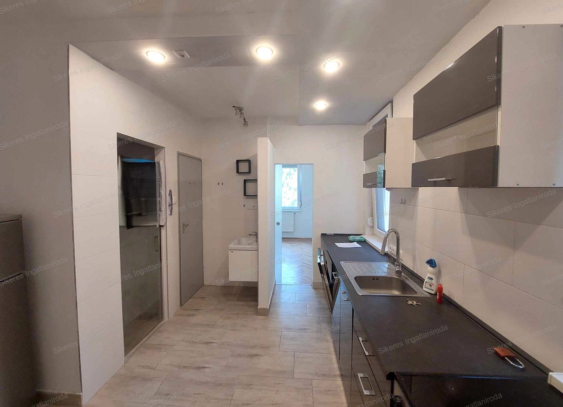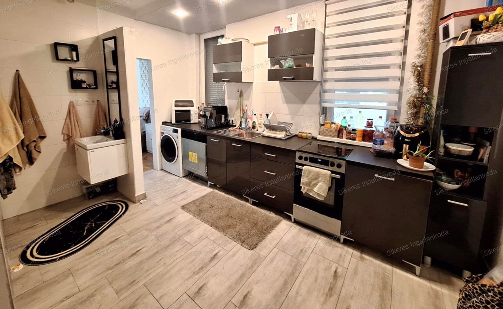 A konyha szintén megújult, modern konyhabútorral és beépített gépekkel felszerelve, amelyek az eladási ár részét képezik, így többek között a mosogatógép is a vevő rendelkezésére áll.