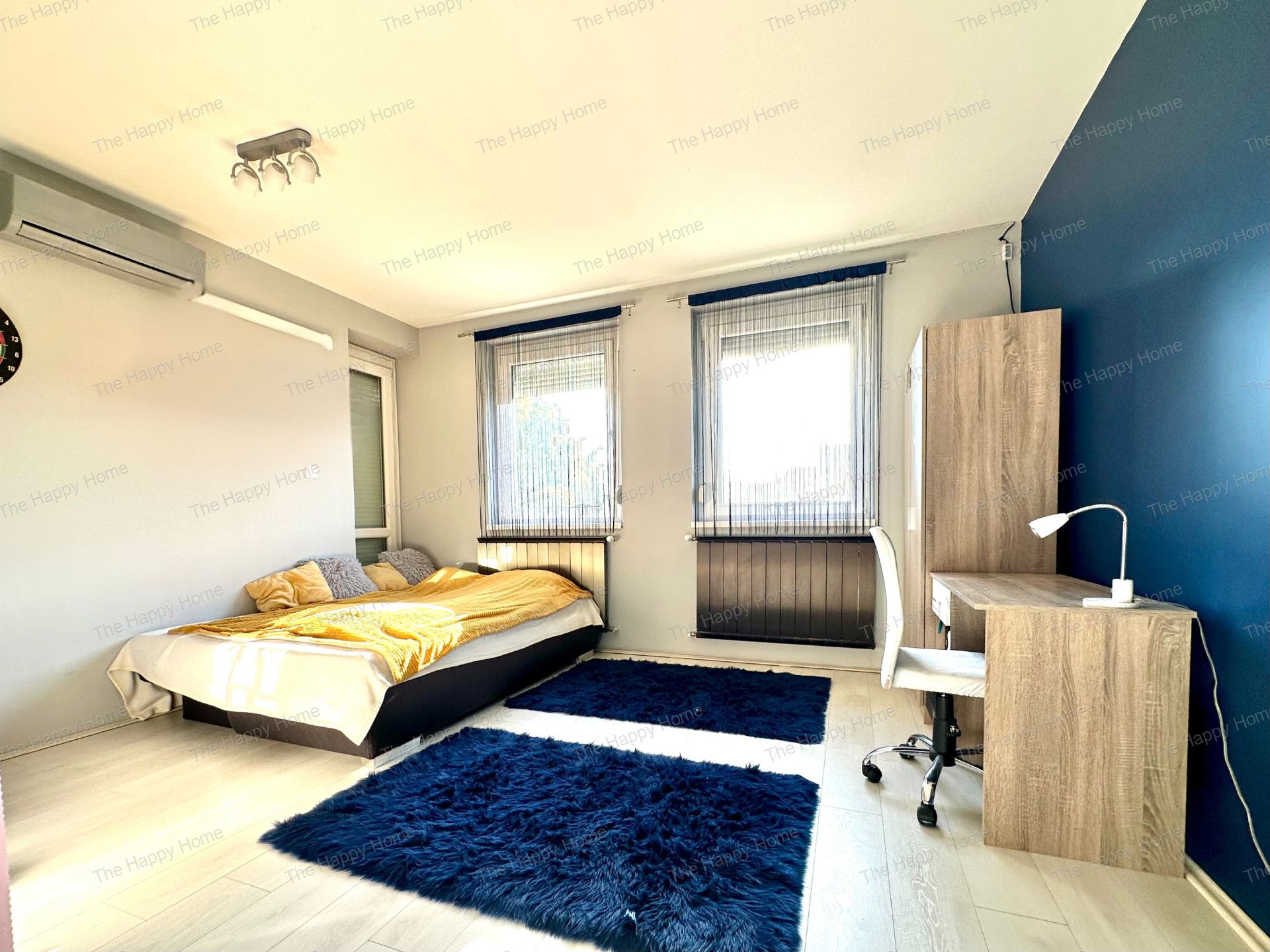 - 2 nagyméretű szoba (az egyik két helyiség összenyitásával lett kialakítva, de könnyen visszaalakítható egy 8 és egy 10 m²-es külön szobára)