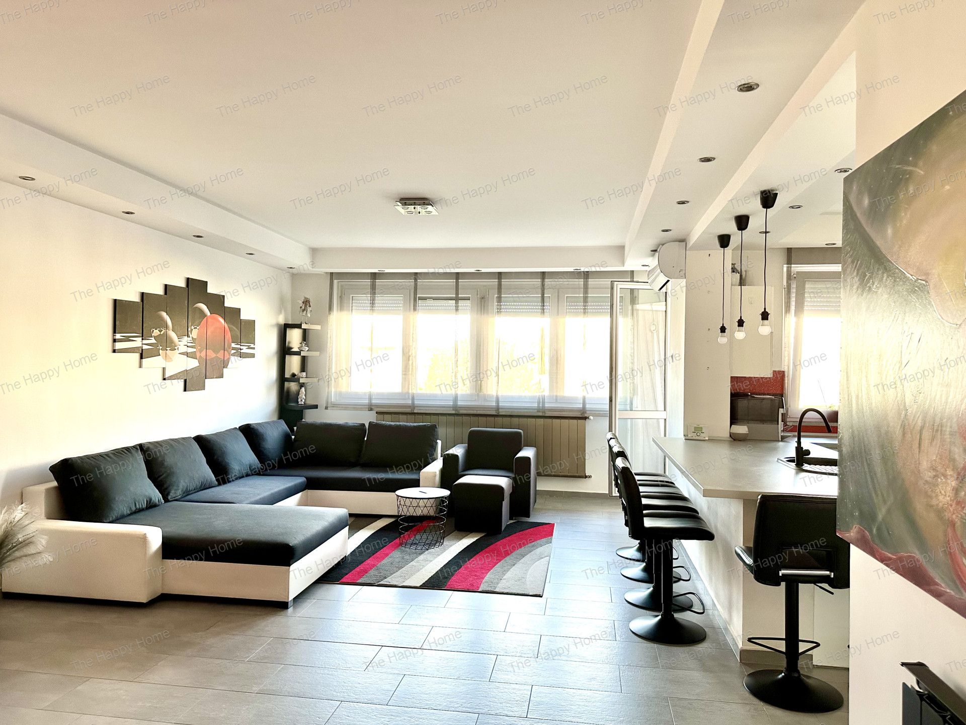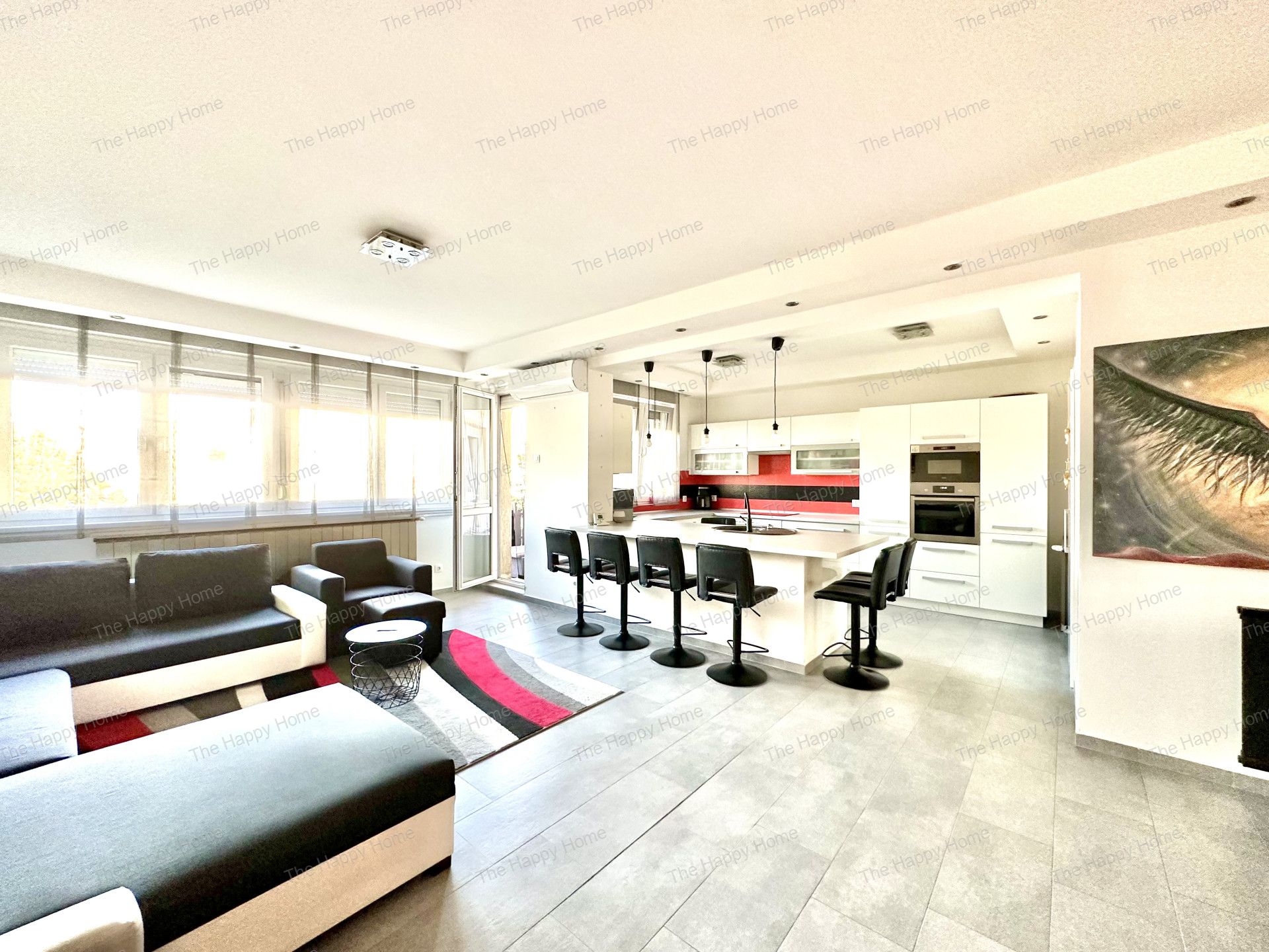 - tágas, világos amerikai konyhás nappali erkéllyel