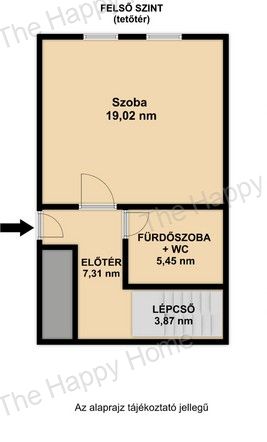 A felső szint (36 m²) akár önálló lakrészként is hasznosítható, hiszen külön helyrajzi számon szerepel és saját bejárattal rendelkezik.