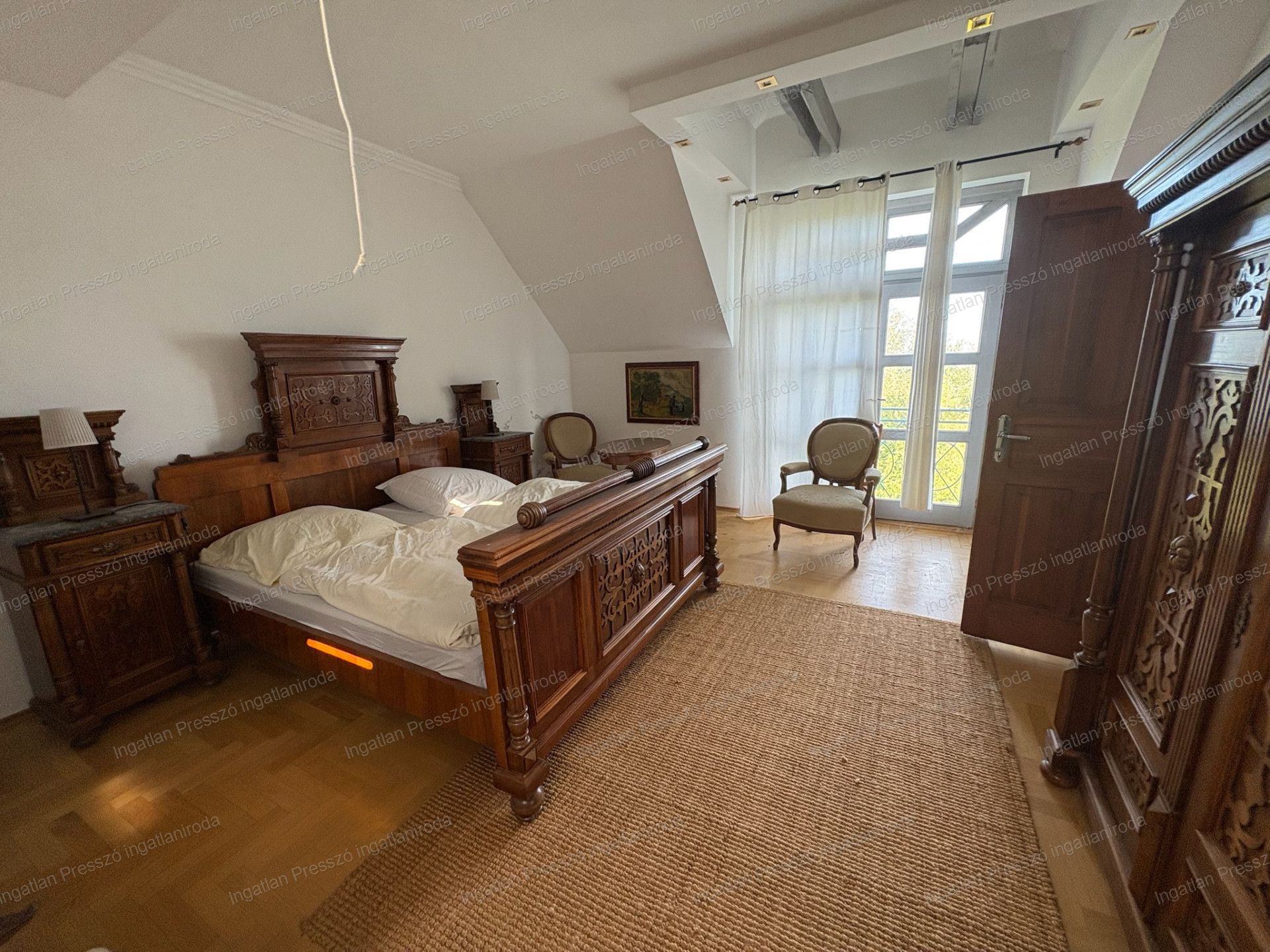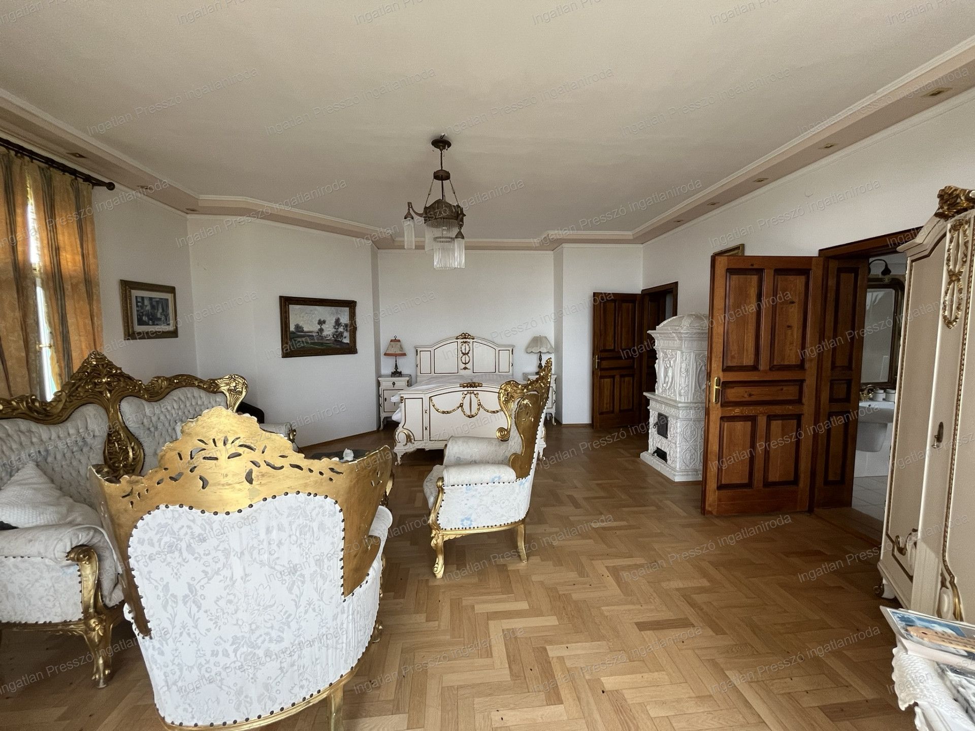 - II. emelet: 141m2, 3 szoba külön-külön fürdőszobával - (a lakosztályhoz erkély is tartozik), nappali/társalgó