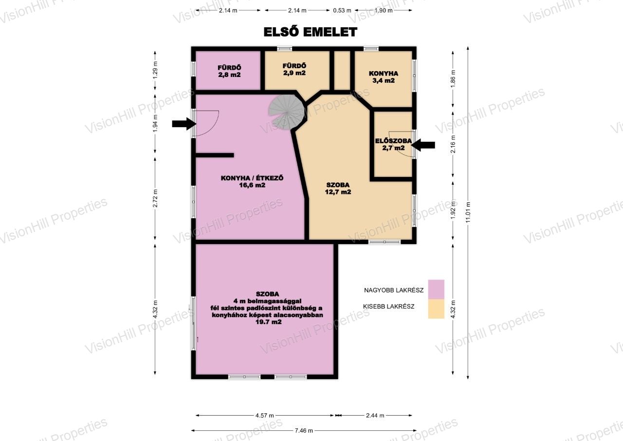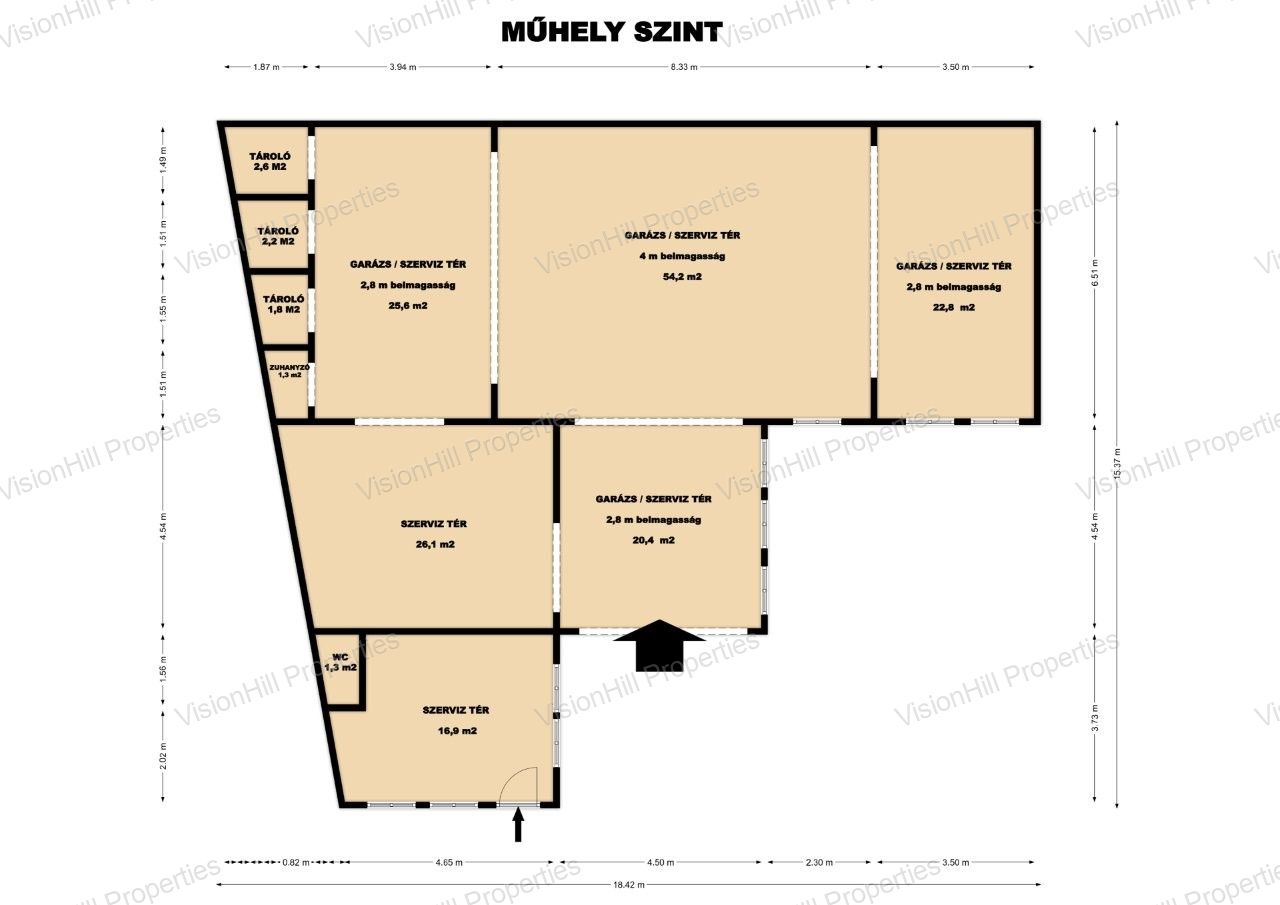 Az ingatlan összesen bruttó 390 m² beépített alapterülettel rendelkezik, mely az alábbi egységeket foglalja magába: