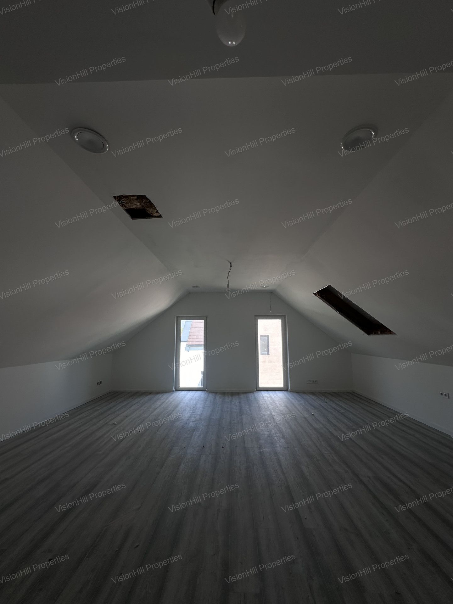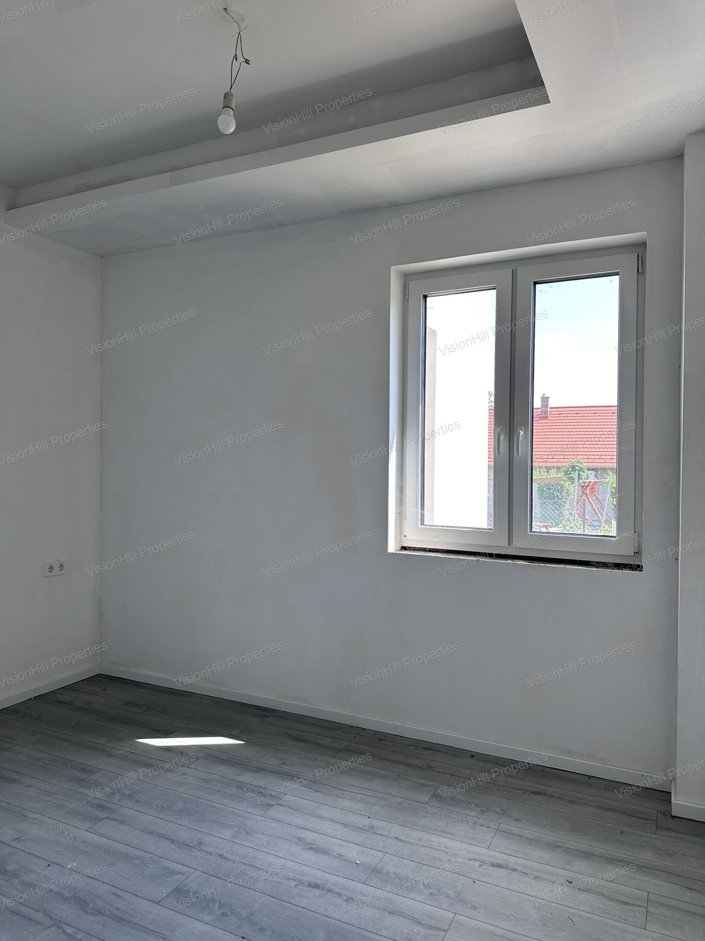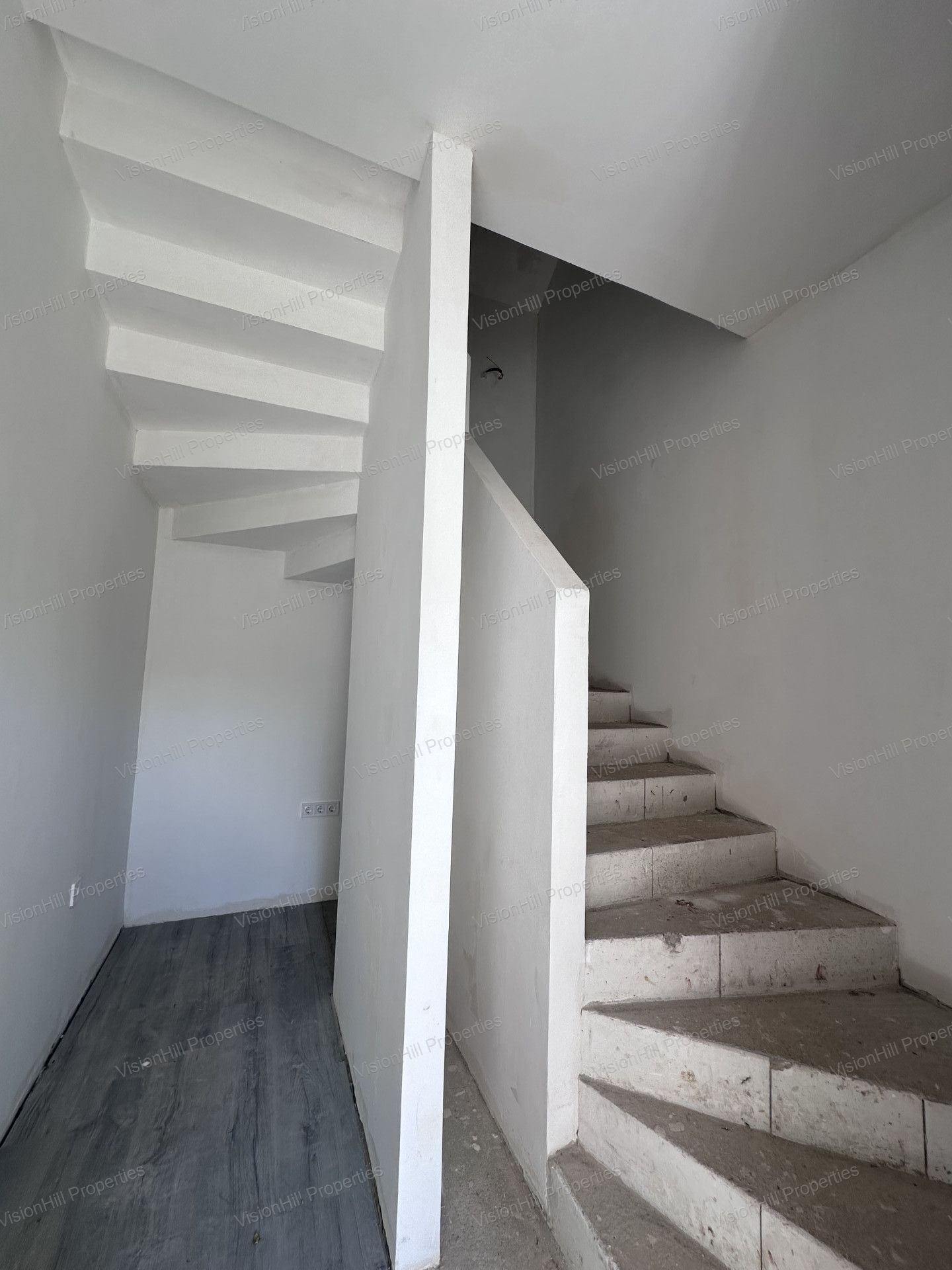 Emelet: 95 m², 2 hálószoba, 1 amerikai konyhás nappali, fürdőszoba WC-vel
