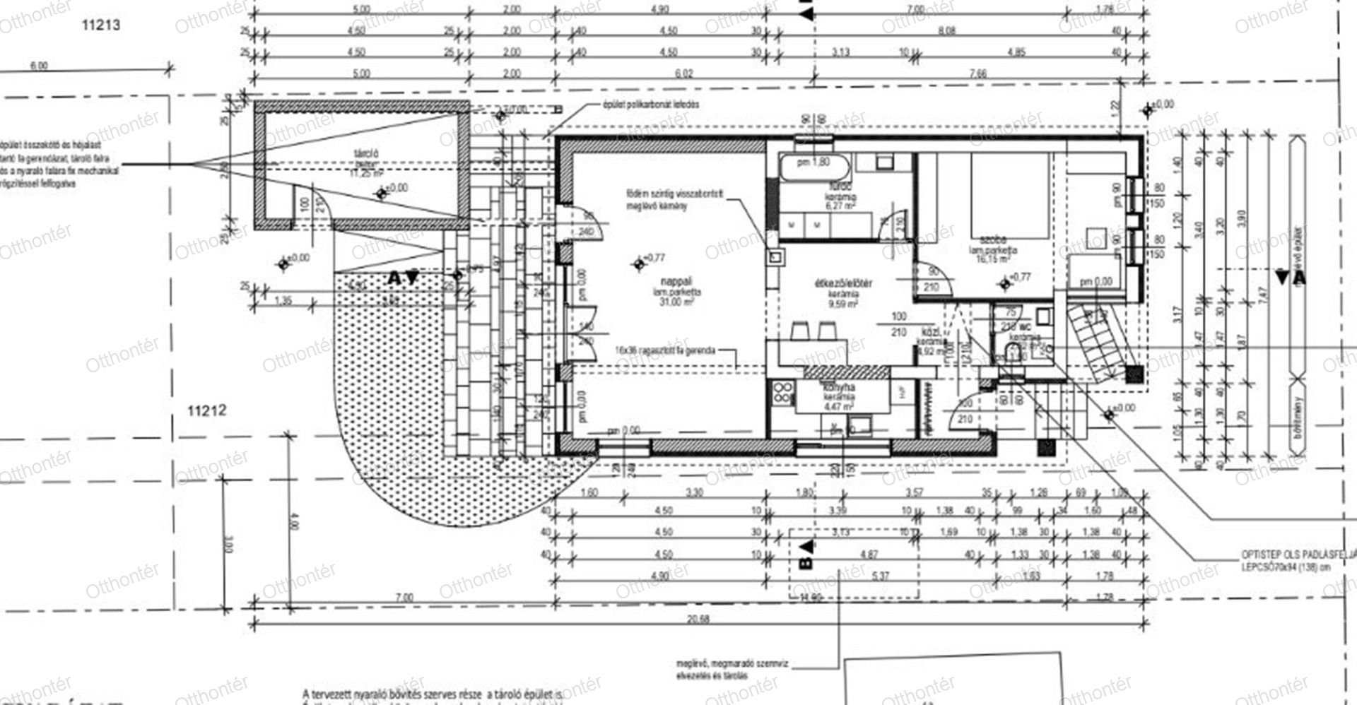A telek 30%-os beépíthetősége lehetőséget ad a ház további bővítésére is.